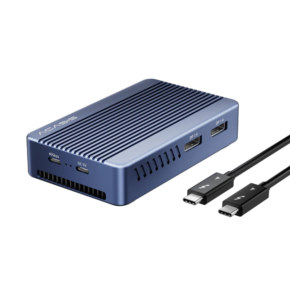 6 In 1 Multifunctional Expansion Acasis 6-in-1 Thunderbolt 3 40Gbps enclosure & docking station, offers a variety of ports - 1x Thunderbolt 3 (40Gbps), 2x DP (4K60Hz), 2x USB 3.1 (10Gbps). Lightweight and portable for home, office, or travel. Up to 8K@60HZ UHD Output Mirror or extend your screen contents in stunning 8K60Hz resolution, with high-definition graphic images displayed on your HDTV, monitor or projector, giving you a crystal-clear display to get a visual feast or improve your productivity. Lightning-Speed Data Transfer...