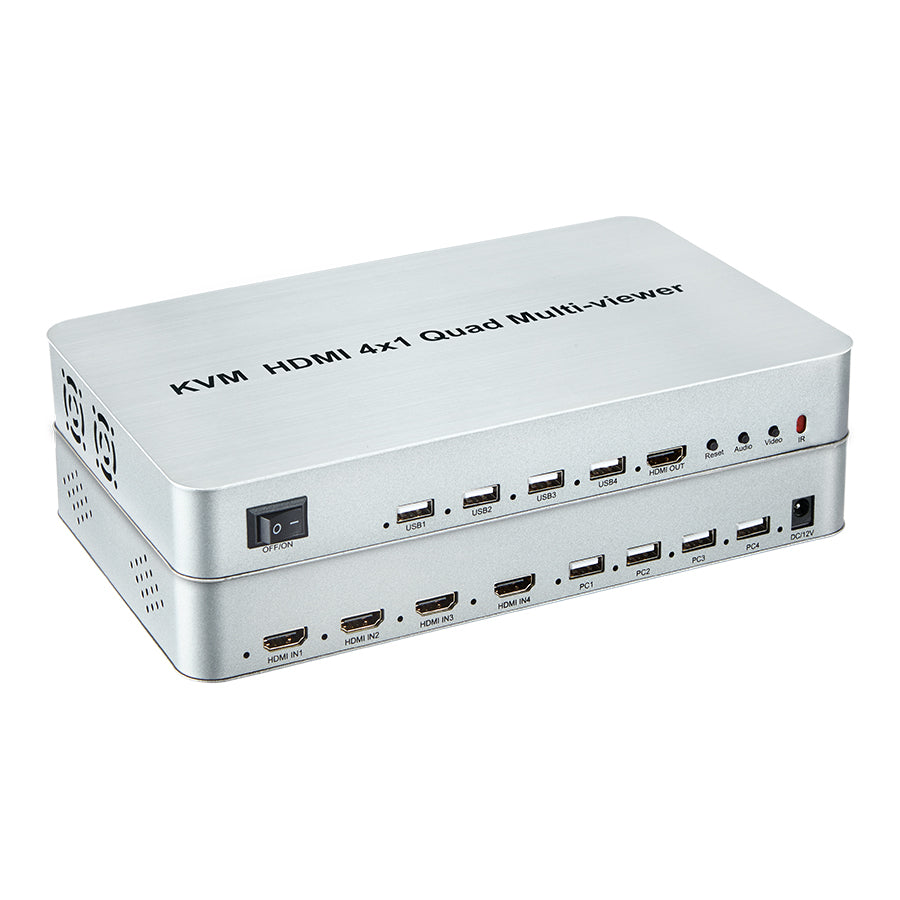 Features: Support 4 HDMI inputs, 1 HDMI output; Support 4 channels HDMI signal screen segmentation; Support Highest Resolution up to 4K@30Hz; Support Resolution 4K,1080P,720P,1024X768,1360X768,etc; Support IR Control; Support Audio Output Format: PCM; Supports 1 way Mouse and Keyboard to Control 4 ways PC host; USB Supports Windows/Linux/MAC OS and Android Operation System, etc; Plug and Play;...