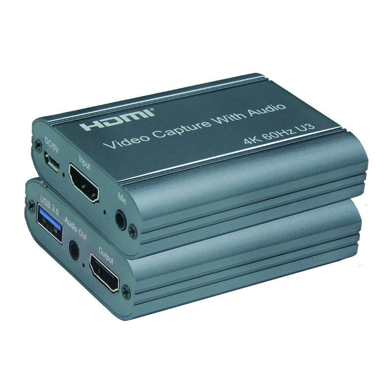 HDMI Video Capture Card 4K@60Hz HDMI Video Capture With Loop Out The HDMI video capture can capture and separate the HD video and audio signal. It can display the HD signal to the displayer or projector. Also it supports USB storage by computer at the same time. The stripped left and right analog audio 3.5 stereo output. The max resolution can be up to 4K/60Hz.Also can push to online live platforms to live at the same time, Suitable for HD acquisition, teaching live streaming, game live streaming, Study video capture, Films capture etc. Support max resolution up to 4K/60Hz;...