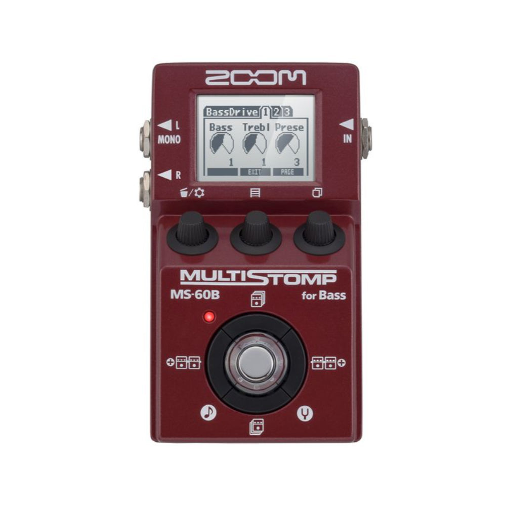 Zoom's MS-60B Multistomp and bring your bass to the forefront. 58 expertly crafted DSP effects and bass amp / cabinet models give you everything you need to quickly and easily create deep, rich bass tones. Dual output jacks and a handy built-in tuner complete the package, making the MS-60B the perfect companion both onstage and in the studio. Features: 58 bass effects and amp/preamp/DI models, including modulation, equalization, delay, and reverb Up to 4 effects can be used simultaneously, in any order 50 memory locations for the storage of user-created patches 30 preset patches Patch cycling Onboard chromatic tuner supports all standard bass tunings...
