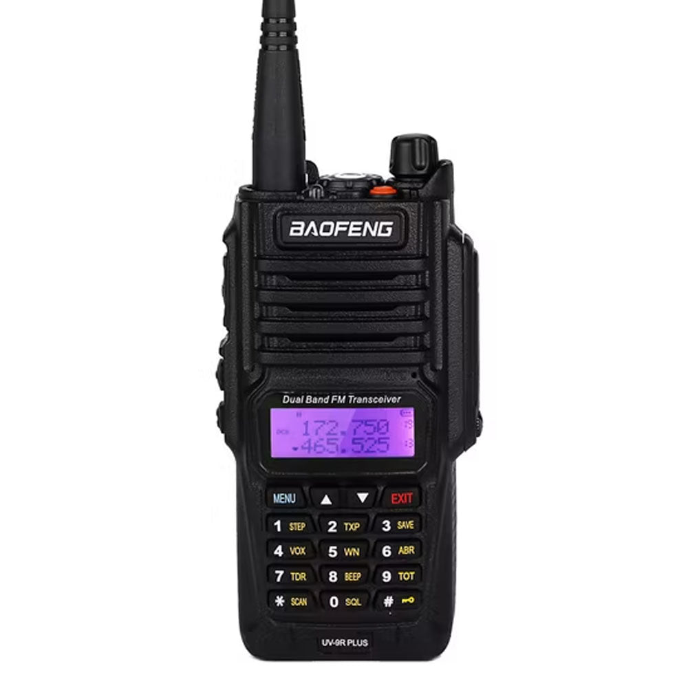 Description: BAOFENG UV-9R PLUS IP67 WATERPROOF RADIO UHF/VHF WALKIE TALKIE 8W WATERPROOF WALKIE TALKIES BAOFENG UV-9R Plus Waterproof portable Radio UV 9R Plus is one of Baofeng’s noteworthy handheld radio models & a waterproof device you’d like to bring for outdoor activities. It prides itself on being waterproof and dustproof. It is IP67 Dust & Waterproof or water resistant two way radio. It can work well under one meter water for 30 minutes and it ensure the product reliability in the wet environments or repels the heaviest rain. It comes with a long-lasting rechargeable battery . The Baofeng UV-9R Plus waterproof radio is built with comfortable buttons, VOX (hands free communication) and features a built in led flashlight that is useful when you’re in dark vicinities. Other features include an emergency alert feature, low battery alert, with long battery Life , whistle belt clip, LCD display and etc. It’s ergonomic and versatile since you can use it anywhere, including shopping malls, hotels, and restaurants. Features: Output : 8W(H)/4W(M)/1W(L) Frequency Range: 136.00-174.00 MHz / 400.00-520.00MHz...