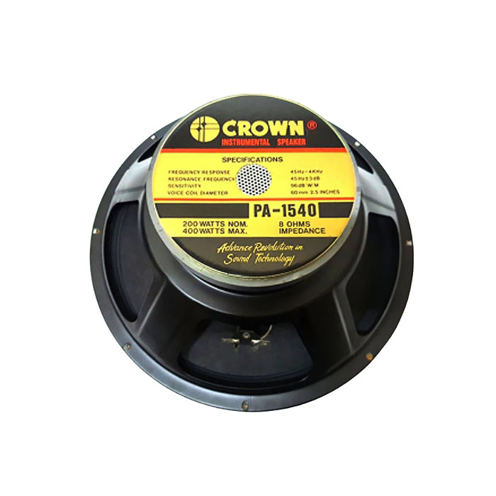 Overview: Model: PA-1540 Size: 15" Max Power: 400W Nominal: 200W Impedance: 8 Ohms Sensitivity: 96dB/W/M Frequency Response: 45Hz - 4KHz Magnet: 180x20mm Voice Coil Diameter: 60.5 Ø...