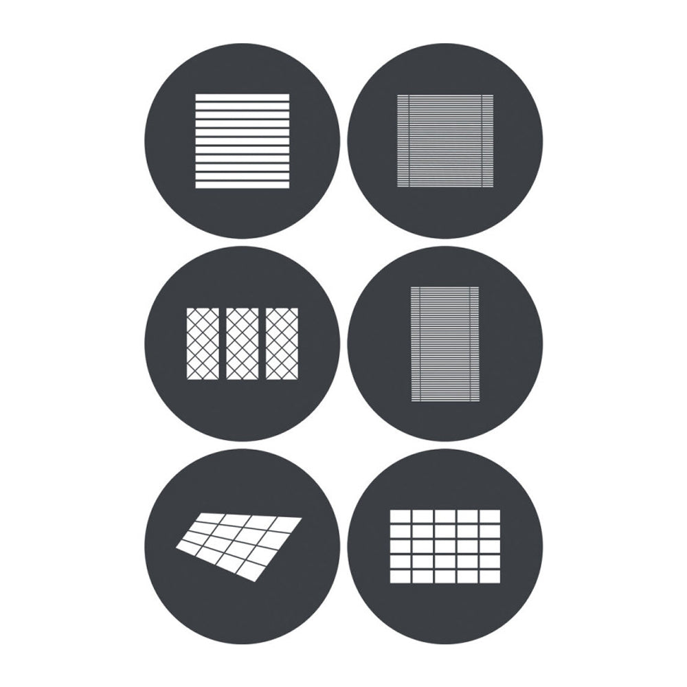 GODOX GP-GS4 Gobo Set Introduction: This GP-GS4 Gobo Set from Godox is designed for the MG1200Bi Spotlight Mount and GP19K, GP26K, GP36K projection attachments that fit the G-Mount system. The kit includes six 148mm gobos that add different patterns to any kind of creative work, such as theater, video, film, or fashion. The set includes gobos with six different window patterns. Description: This Godox GP-GS4 Lighting Gobos Kit contains six different laser-cut stainless-steel gobo designs, that enable you to project patterns various of light onto your background or subject. They can be used either in sharp focus for super-crisp projections or de-focused for a more subtle effect. Optimize your shots with the precision of crisp laser-cut designs. Plus, Godox's GP Spotlight System is designed to provide smooth and reliable performance that you can count on. Godox GP-GS4 Lighting Gobos Compatible With These Gobo Lighting Accessories are designed specifically for use with the GODOX KNOWLED GP19K, GP26K, and GP36K G-Mount spotlight system for the MG1200Bi. The Godox GP-GS4 Lighting Gobos Set is the perfect accessory for Cinematographers, Lighting Gaffers, or Theatre Productions, that use GP Series Spotlight. These GOBOs enable you to add a little mood and creativity to your scenes. This set adds depth and texture to your scenes, giving you more creative freedom and adding a professional touch to any production....