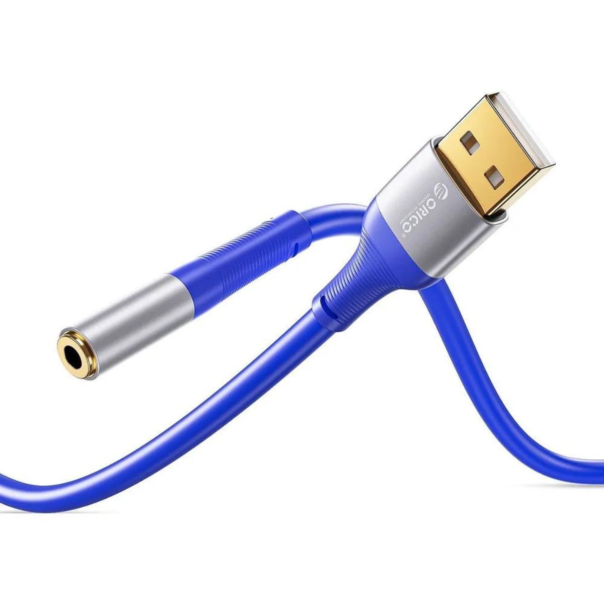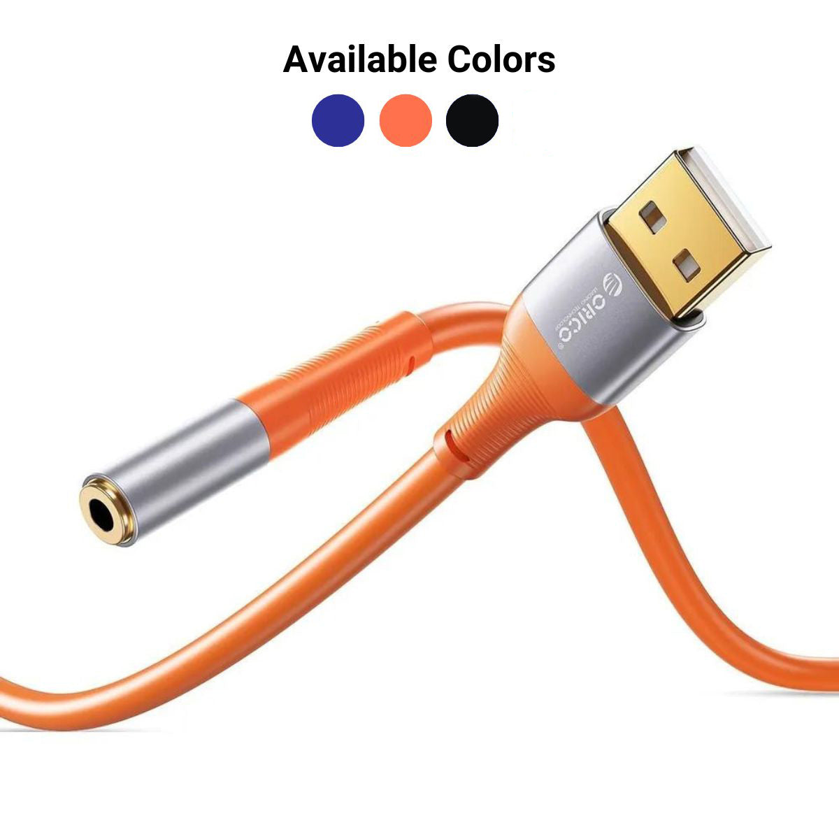 3.5MM TO USB-A AUDIO ADAPTER CABLE Specifications: Brand: ORICO Model: AXA1 Name: USB-A to 3.5mm Microphone Adapter Color: Blue / Orange / Black Connector: Glided Core: Tinned Copper...