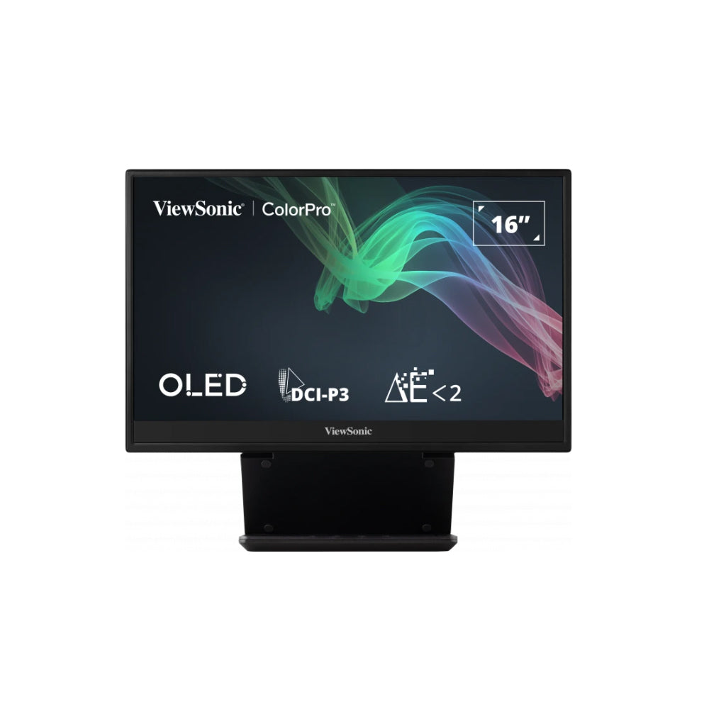 ViewSonic VP16-OLED 15.6" OLED Portable Monitor 15.6 Inch Full HD (1920x1080p) OLED portable monitor with 60Hz refresh rate and protective case With a weight of 2 lbs and a thickness of 0.8 in, this portable monitor slips easily into backpacks and purses USB-C connectivity for fast data, audio and video transfer, and 40W charging over one cable Comes with ergonomic height-adjustable stand and tripod mount as well as monitor hood and screen cover Pantone Validated display offer pinpoint color accuracy and testing The VP16-OLED supports laptops, PCs operating systems and more with Micro HDMI and USB-C inputs SPECIFICATIONS: Display: Display Size (in.): 16...
