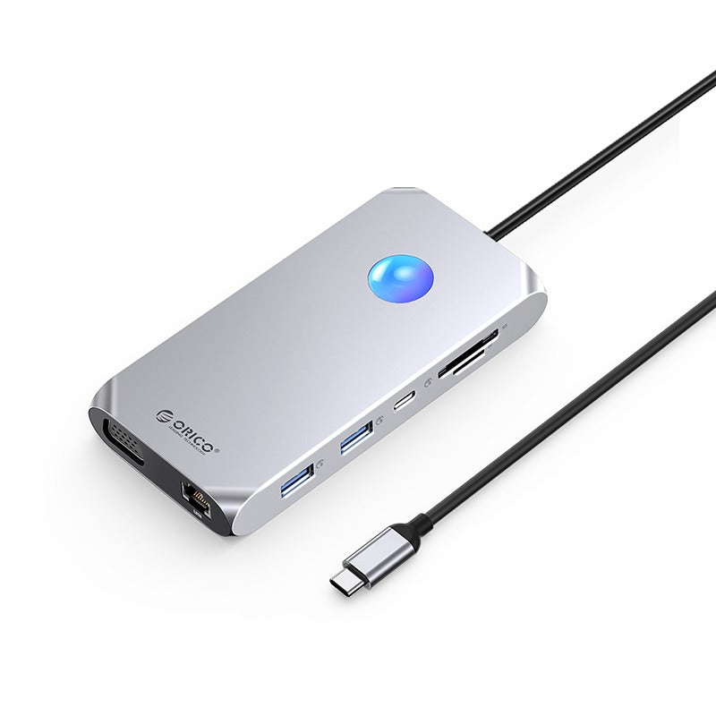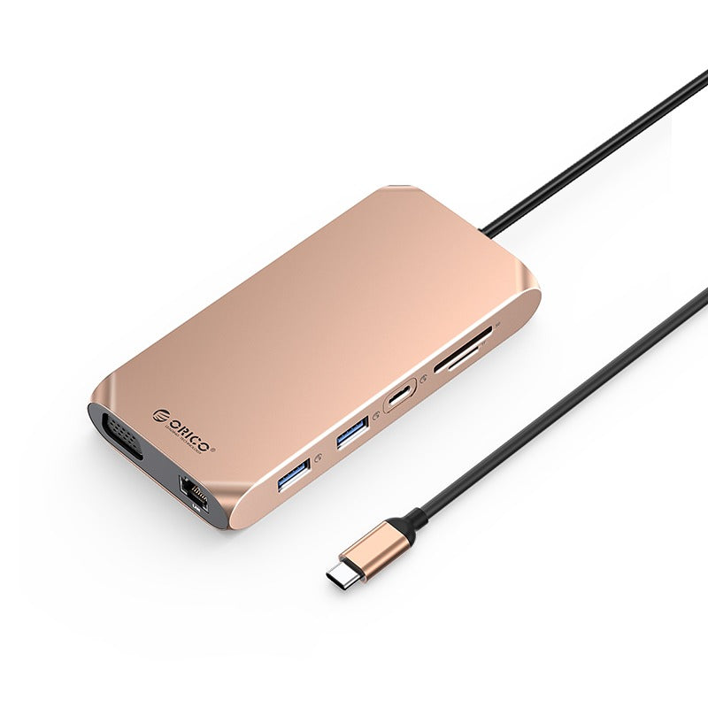 ORICO-XDR-X22 ORICO Type-C 12 in 1 Docking Station 12-in-1 USB C Hub ORICO Docking Station has 12 functional ports, including Type-C PD3.0 100W x 1 2.USB-A 3.1 5Gbps x 3 3.USB-A 2.0 480Mbps x 1 4.Type-C 3.1 5Gbps x 1 5.HDMI 1.4 4K/30Hz x 1 6.VGA 1080P x 1 7.SD 3.0 5Gbps x 1 8.TF 3.0 (TF/SD) 5Gbps x 1 9.RJ45 10/100/1000M x 1 10.Audio (CTIA) x 1.Meet a variety of expansion needs, office and entertainment are not delayed. Ultra 4K Output and Triple Display HDMI port outputs up to 4K@30Hz resolution, perfect for mirroring or extending your screen to an HDTV, monitor or projector to create a cinema-like visual experience. 5Gbps Data Transfer & PD100W Charging ORICO Type C Hub offers 3 USB 3.1 ports, and 1 USB 2.0 port to ensure you get fast data transfer at up to 5Gbps. With a Type-C PD3.0 100W charging port, you can use it while charging, no more worries about your laptop power storage. And with built-in over-current and short-circuit protection mechanism, the device is protected. Appearance of aluminum alloy &SD/Micro SD Card Reader aluminum alloy material, convenient heat dissipation, not easy to get hot. And there are three color: silver, gray and gold for customers to choose to buy. TF/SD dual card reader, support reading 2 cards at the same time, and can easily access files in SD/TF memory cards. Maximum supportable reading 2TB memory card....