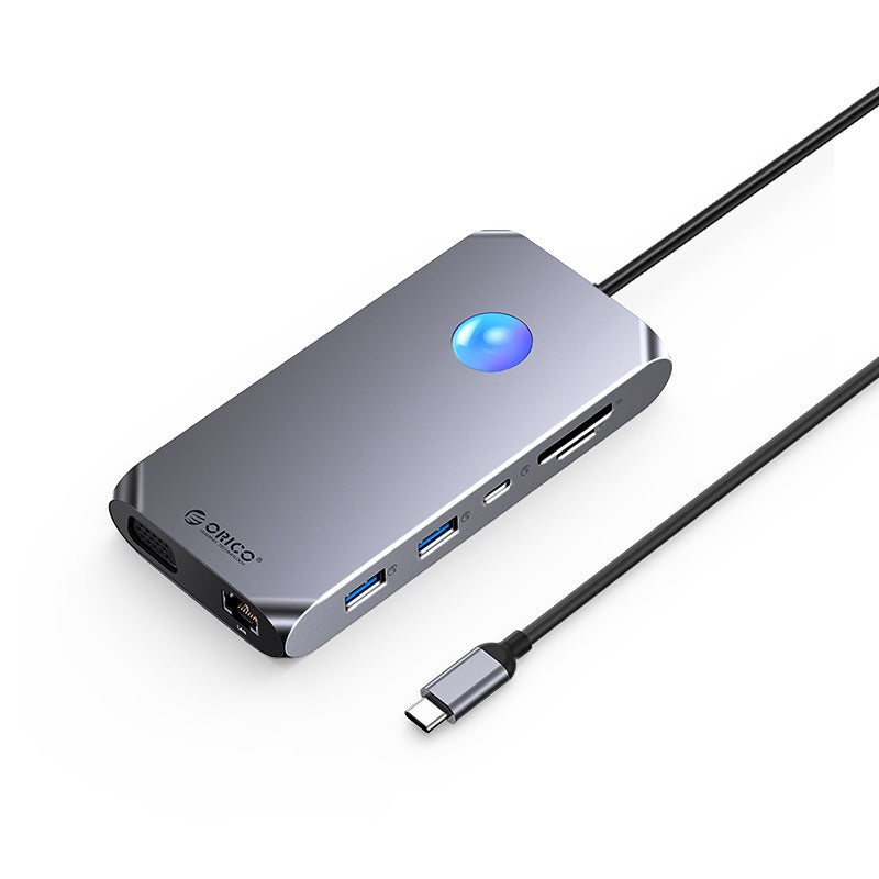 ORICO-XCR-X22 ORICO Type-C 12-in-1 Multifunction Docking Station 12-in-1 Docking Station - ORICO USB c hub is Type-C PD3.0 100W x 1 2. USB-A 3.1 5Gbps x 3 3. USB-A 2.0 480Mbps x 1 4. Type-C 3.1 5Gbps x 1 5. HDMI 1.4 4K/30Hz x 1 6. VGA 1080P x 1 7. SD 3.0 5Gbps x 1 8. TF 3.0 (TF/SD both read) 5Gbps x 1 9. RJ45 10/100/1000M x 1 10. Audio US Standard (CTIA) x 1 port for a total of 12 functional ports 5Gbps Data Transfer & 100WDD Charging- The USB hub features 3 USB 3.1 ports, Type-C data transfer port and 1 USB 2.0 port to ensure fast data transfer up to 5Gbps. It also has a Type-C PD charging port to charge your laptop so you don't have to worry about running out of power. Built-in overcurrent and short circuit protection mechanism to keep your device safe. 4K High Definition Output and Connects to Multiple Displays-The ORICO usb-c hub with HDMI and VGA can expand to 2 displays at the same time, supporting mirror mode and extended mode. The HDMI port supports resolutions up to 4K@30Hz, perfect for mirroring and extending your screen to your HDTV, monitor or projector for a cinematic visual experience Aluminum Alloy & MicroSD/SD Card Slot- The aluminum alloy material is convenient for heat dissipation, and it is not easy to get hot. Available in 3 colors: silver, gray, and gold so that you can choose and purchase. Equipped with TF/SD card slot, support two cards read at the same time, easy access to SD/TF card files. Support memory cards up to 2TB read capacity Features: Product Model: ORICO-XCR-X22 Material: Aluminum Alloy + ABS Color: Rose Gold/Gray/Silver...