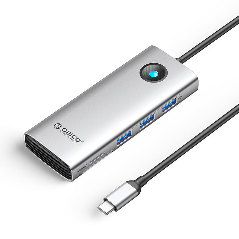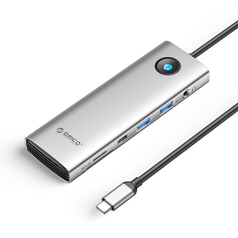 ORICO-PW11-8P ORICO Type-C 8-in-1 5Gbps Multifunction Docking Station Low Resistance, High Cooling Speed - The aluminum metal body features high heat dissipation efficiency, lowering the speed swiftly. 4K, For Better Viewing - Support 4K/60Hz, 4K/30Hz, 2K/60Hz, 1080P/120Hz video output. 1G/3S Three USB 3.0 ports transmission speed up to 420MB/s. 1000Mbps Surfing Cheerfully- 1000Mbps/100Mbps/10Mbps playing games with a super fast network and working with a stable net connection. Charging while playing - PD100W fast charges your laptop and helps you build a smooth workflow. Zero- Latency transfer & read - The TF/SD card reader is designed to meet the needs of laptops data reading needs. 3.5mm Audio Listen Freely - Support Hi-Fi audio output and enjoy your own music world. Features: ...