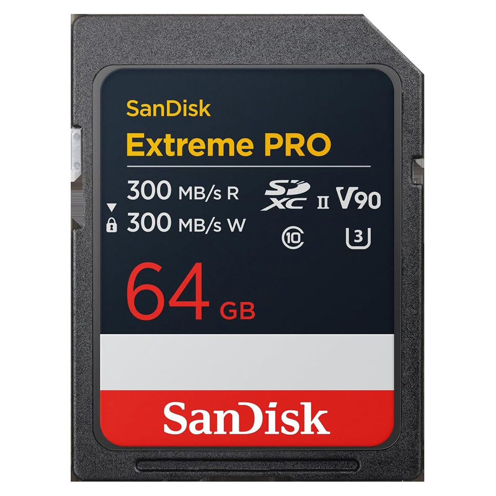 SanDisk Extreme PRO SD UHS-I Card Our most powerful SD UHS-I memory card yet delivers performance that elevates your creativity. With shot speeds of up to 90MB/s and UHS Speed Class 3 (U3) recording, you’re ready to capture stunning high-resolution, stutter-free 4K UHD video. And, because your pace doesn’t let up after the shots are in, it delivers up to 200MB/s transfer speeds for a faster postproduction workflow. At a Glance Read speeds up to 200MB/s [64GB-1TB] Write speeds up to 90MB/s Perfect for shooting 4K UHD video and sequential burst mode photography UHS Speed Class 3 (U3) and Video Speed Class 30 (V30) Built for & tested in harsh conditions: Temperature-proof, waterproof, shock-proof, & x-ray-proof...