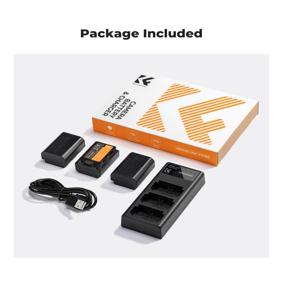 K&F Concept NP-FZ100 (3-Pack) 2280mAh Rechargeable...