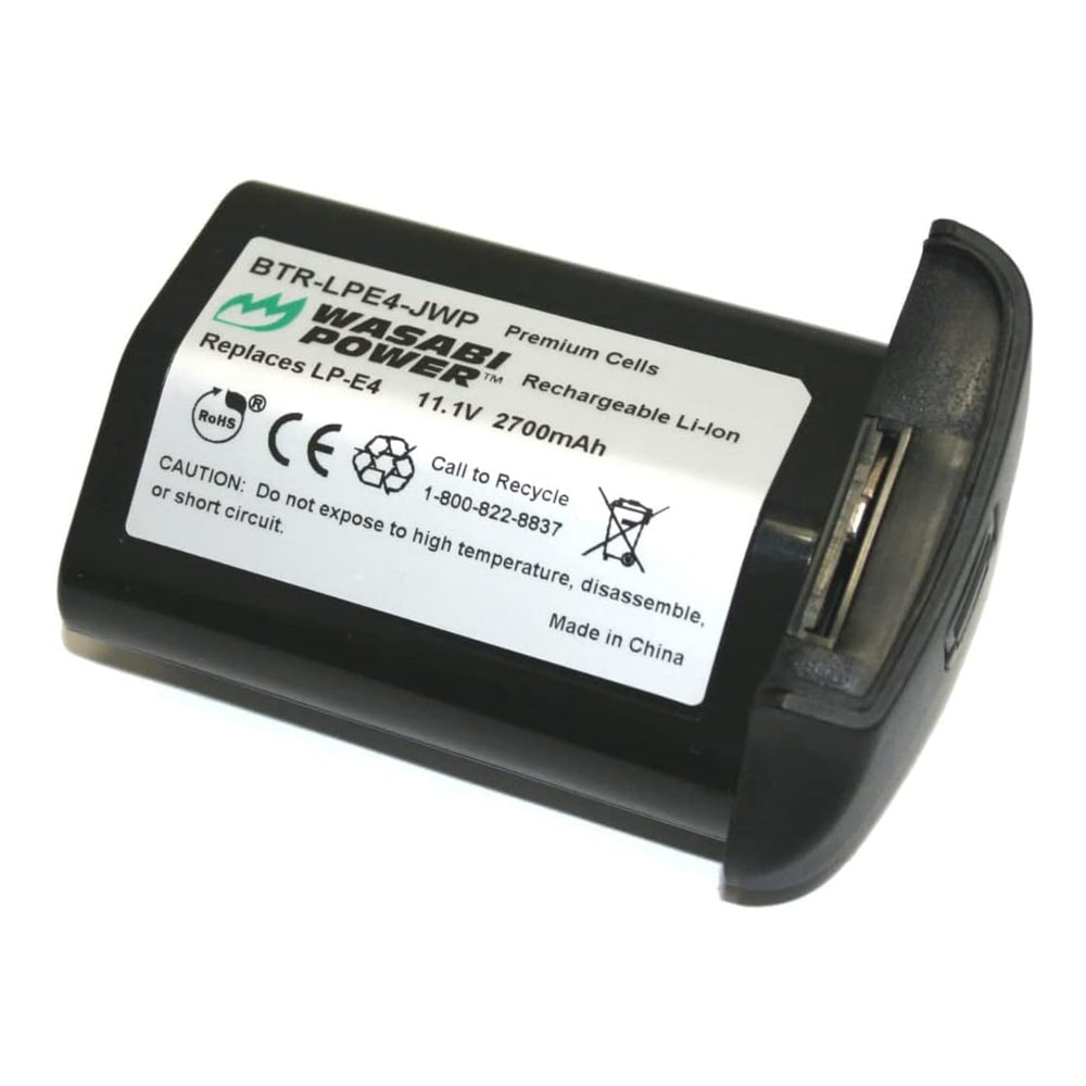 LP-E4 BATTERY for Canon EOS-1D Series Camera WASABI BTR-LPE4-JWP This Wasabi Power battery replaces the Canon LP-E4 battery pack. It is compatible with the Canon EOS-1D Mark III, Mark IV, and EOS-1Ds Mark III camera models. It meets or exceeds OEM standards. Features: Rechargeable lithium-ion battery for Canon LP-E4 Note: Battery will NOT show remaining time with Canon EOS-1D X Premium cells for longer battery life; Can be charged with the original Canon charger Rated at 11.1V...