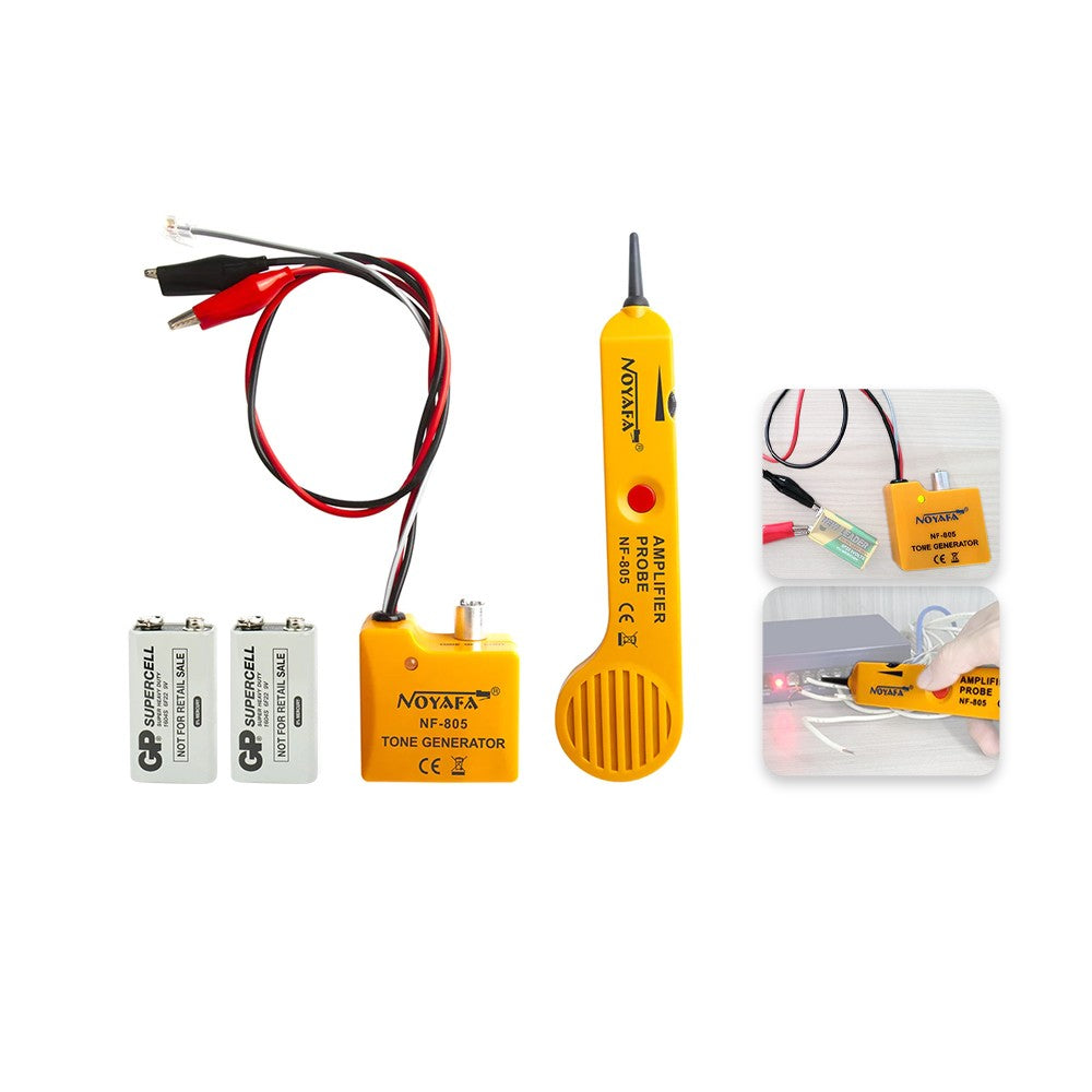 NOYAFA NF-805 Tone Generator and Probe Kit for Telephone and Network Line Test Features & Benefits: Tracing and Identifying Wires: Quickly and accurately locate wires in a bundle using the Tone Generator. Network Cable Testing: Test Cat3, telephone, coaxial, and audio/video signal cables for open and short circuits, and miswires. Versatile Probe: Works with any existing tone generator on the market. Continuity Testing: Choose between CONT Mode for standard testing and TONE Mode for tracing wires with a tone generator....