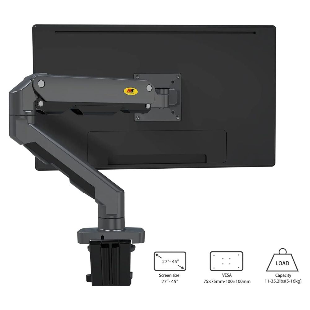North Bayou New Launched Monitor Arm G40 NB North Bayou New Launched Monitor Arm G40 is a new launched long and strong monitor arm from NB, which is an ergonomics interactive display arm that allow you position your monitor wherever you need it so you can work in ergonomic comfort. It helps increase viewing comfort and reduce eye, back and neck strain. Height adjustable arm provide more work space, push away and free up table or desktop space when not in use. Description: UNIVERSAL: Fits LCD, LED flat screen TV or monitors from 22'' to 40'' in size with the load from 4.4 lbs up to 33 lbs, VESA-COMPLIANT PATTERNS 75x75mm and 100x100mm; While if your VESA hole is inside a recession area, Pls noted that the size of the whole VESA Plate of this product is 115*115mm, Extra Longer Screw & Screw spacer may be needed in order to make it fit well. FULLY ADJUSTABLE: The durable gas spring system ensure easy positioning of your monitor in any desirable position; Personalize your workstation any way you want; Support C-clamp or Grommet installation; Heavy-duty construction and super quality materials keep your arm mount stable- This is the sturdiest desk mount on the market....