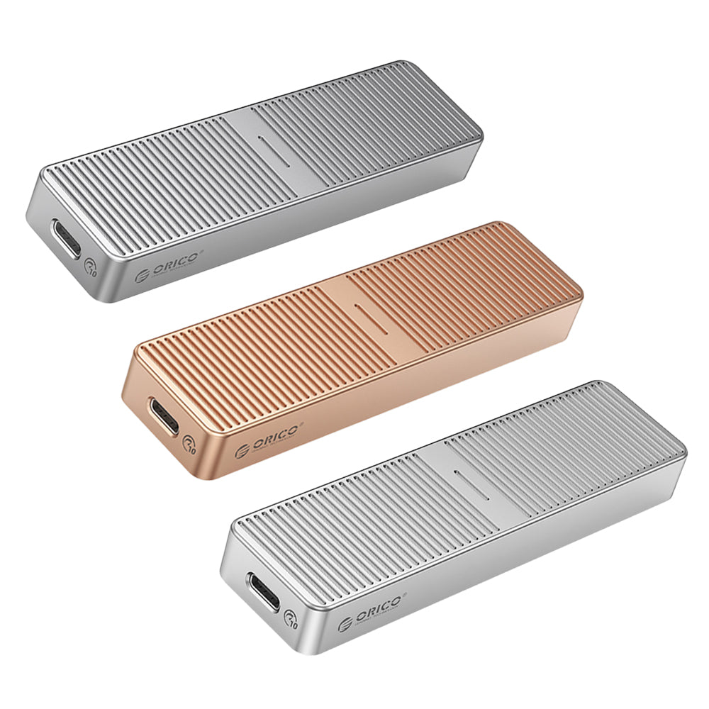 ORICO M231C3 The Orico M.2 NGFF to Type-C Enclosure brings more protability to your SSDs. This enclosure couples high speeds and wide range of compatibility within the NGFF M.2 SSD from factor. Its advanced chip supports VMe PCIe 3.0 protocol, and thanks to its USB 3.2 Type-C port, allows you to reach high transfer speeds of 6Gbps. Its aluminum striped surface, metal thermal fins, and thermal pad allow it to dissipate heat efficiently to protect your SSD. Features: ORICO M.2 NGFF SSD Enclosure Model: ORICO-M231C3-SV/RG/GY Material: Aluminum Alloy + Built-in aluminum alloy heatsink Color: Silver/Rose gold/Gray Input Interface: B-Key/B&M-Key Transmission Rate: 6Gbps...