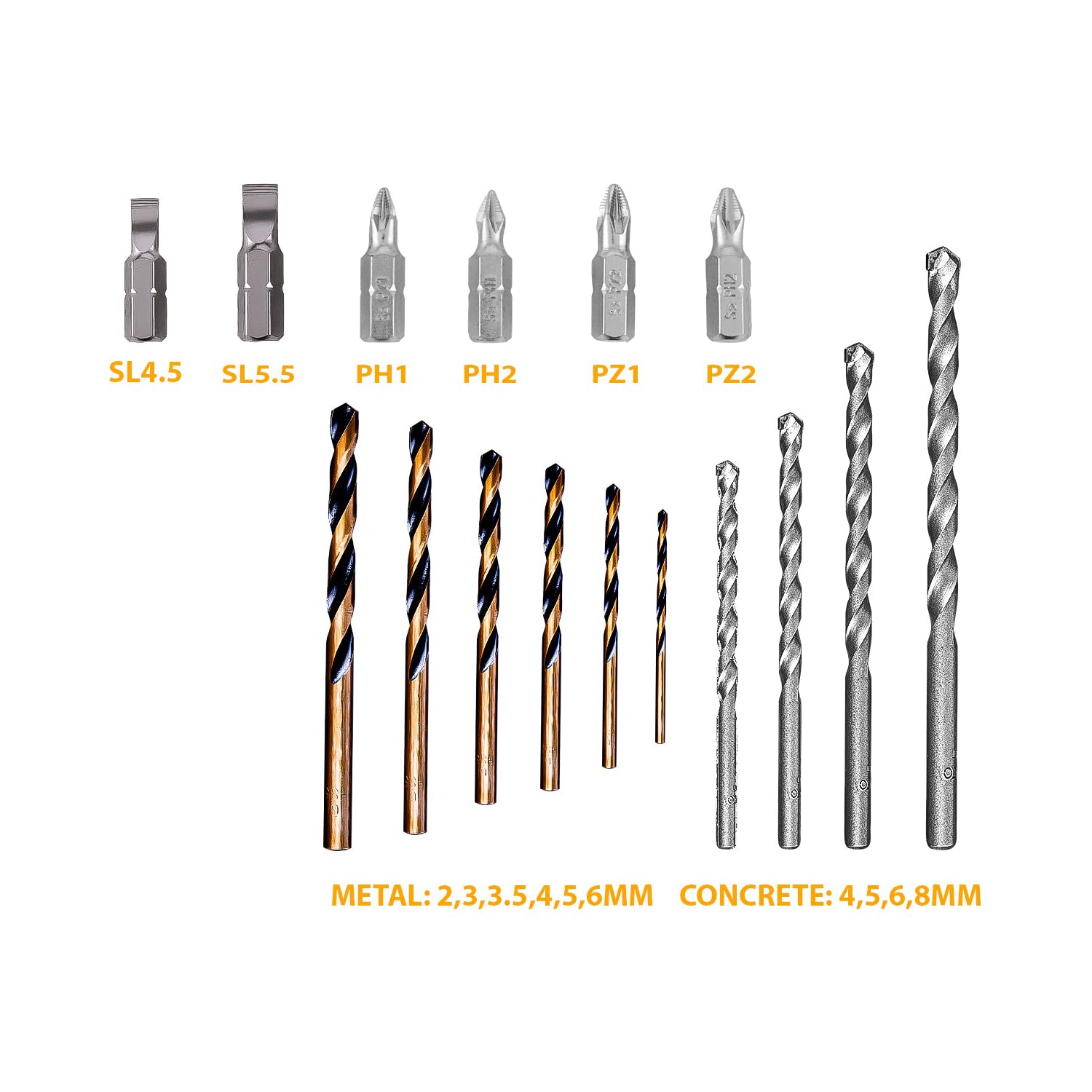 INGCO 16pcs Drill Bits and Screwdriver Bits Set (6...