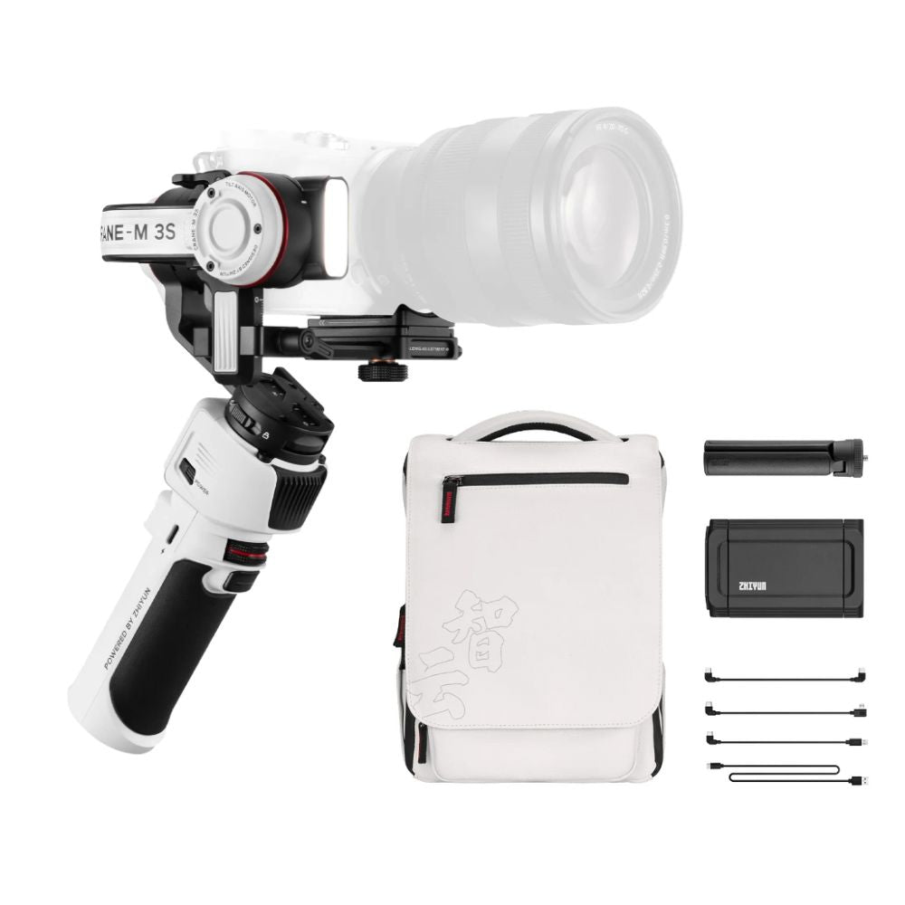 CRANE-M3 S 3-Axis Handheld Gimbal Stabilizer from Zhiyun has been upgraded to accommodate cameras with full-frame lenses, as well as action cameras and smartphones. The CRANE-M3 S offers 360° pan, 305 tilt, and 314° roll rotation with optimized axis locking. Take the gimbal on your next adventure and easily control your settings with the 1.22" color touchscreen, onboard controls, and Bluetooth-powered wireless shutter. A quick release system with two forms of adjustment allows you to easily access your camera's battery without needing to rebalance your rig. The CRANE-M3 S also features a built-in fill light with a 1000 lux output and adjustable color temperature. ZHIYUN CRANE M 3S STANDARD ZHIYUN CRANE M 3S COMBO Features: Ultra-Portable Design Optimized Arm for Full-Frame Lenses...