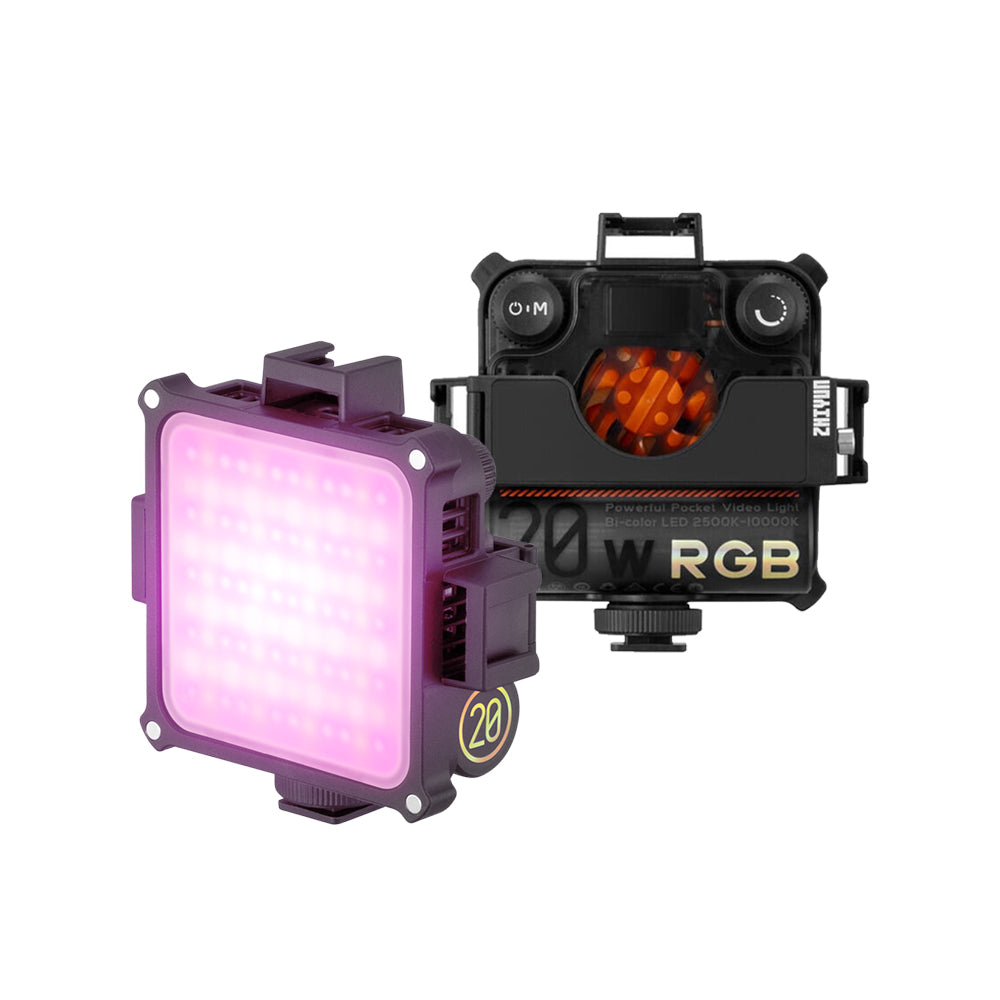 FIVERAY M20C FIVERAY M20C RGB LED Light as part of their FIVERAY Series, known for convenient, cost-effective LED light sources designed for creative video/photo work. The M20C responds to the content creator's need for simplicity and functionality in its compact 3 x 3" body. This on-camera light features RGB capability, a wide 2500 to 10,000K adjustable color temperature, a separate 0 to 100% dimming function, and a runtime of up to 40 minutes at the maximum brightness. The integrated battery charges in about two hours using the included PD charging cable. ZHIYUN FIVERAY M20C STANDARD BLACK ZHIYUN FIVERAY M20C COMBO BLACK Features : Light with Modifiers and Bag Output: 529 Lux at 3.3' (4300K)...
