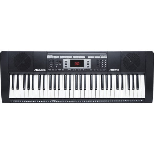 The MELODY 61 Portable 61-Key Keyboard from Alesis features 61 compact, lightweight keys, built-in speakers, and 200 built-in sounds covering a wide variety of instruments—pianos, strings, brass, woodwinds, percussion, mallets, guitars, synths, and sound effects—that can be used to layer multiple sounds together or split two sounds across the keyboard. In addition, there are 128 built-in accompaniment rhythms to create a wide variety of genres. You can even record your own songs too.