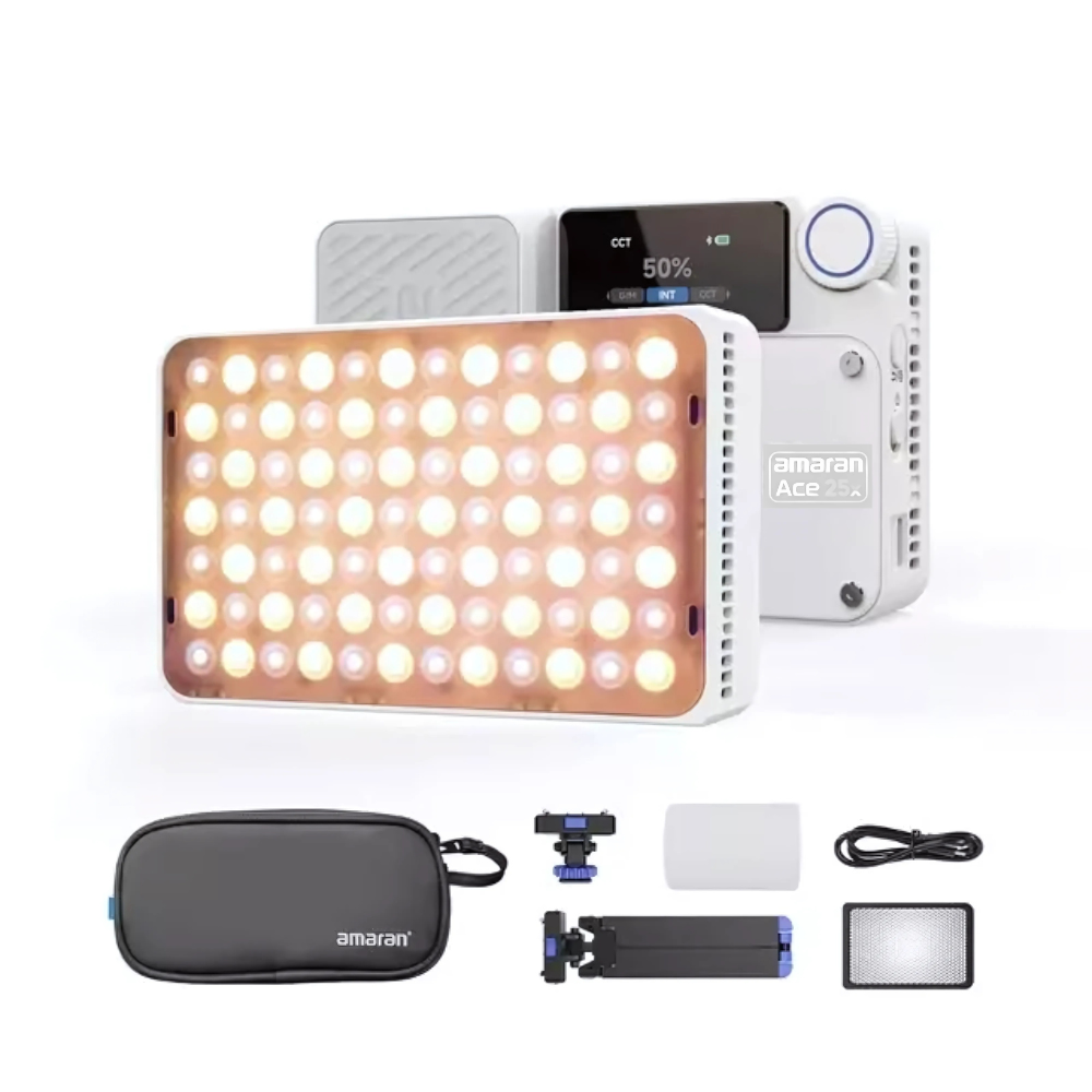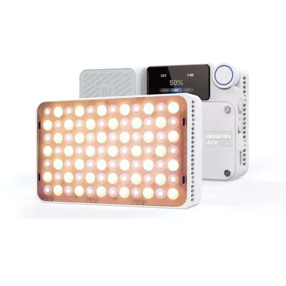Designed for on-the-go creators, the amaran Ace 25x is a bi-color / Ace 25c full-color (RGB) compact LED light with an adjustable color temperature from warm white to cool white or can recreate any color to make your content shine with the perfect shade. Featuring up to 32W of power output and the amaran Ace Lock, this brilliantly bright yet compact light is perfect for travel vloggers or influencers creating on-camera or creators shooting live events.