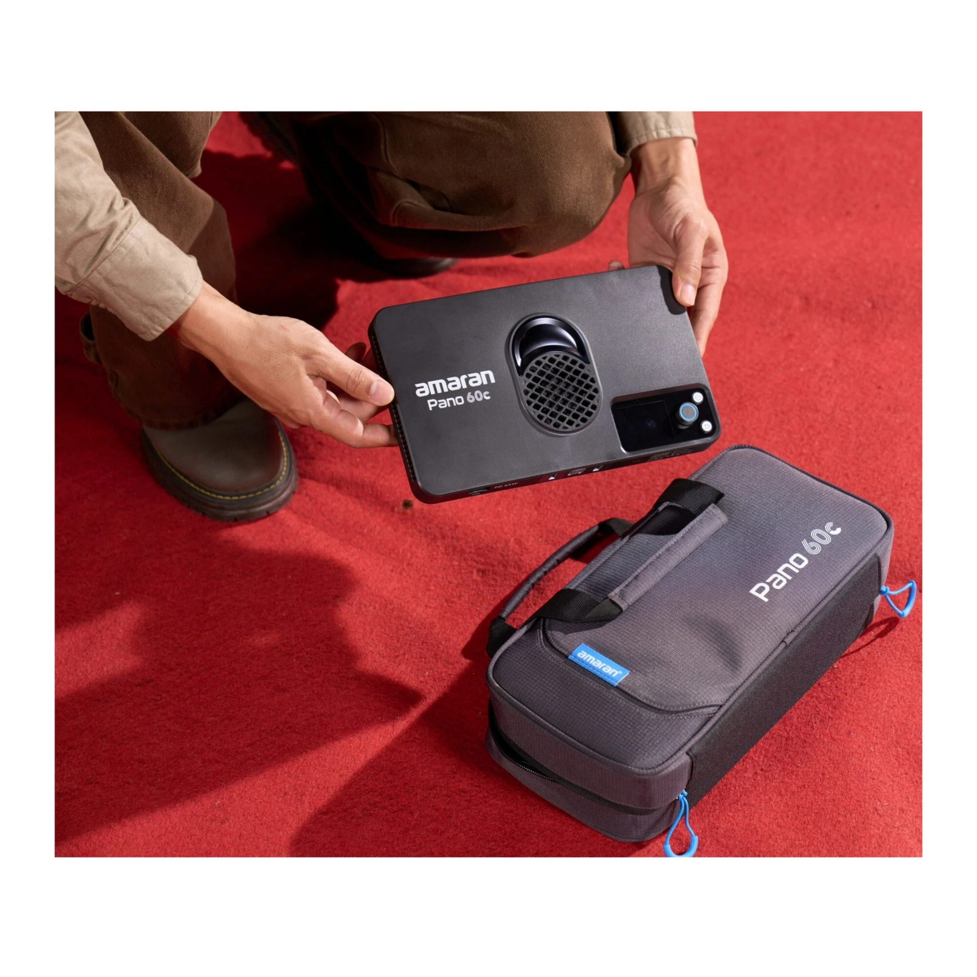Designed for on-the-go creators, the amaran Pano 60c Kit in Charcoal is a 60W full-color panel light that combines unmatched brightness with exceptional portability. As the most compact and portable 60W panel light, it delivers best-in-class brightness in a tablet-sized form factor. With flexible USB-C PD power, amaran Ace E-Lock compatibility, and an all-in-one kit with essential lighting accessories, the amaran Pano 60c Kit is the ultimate travel-ready lighting solution for any creative project.