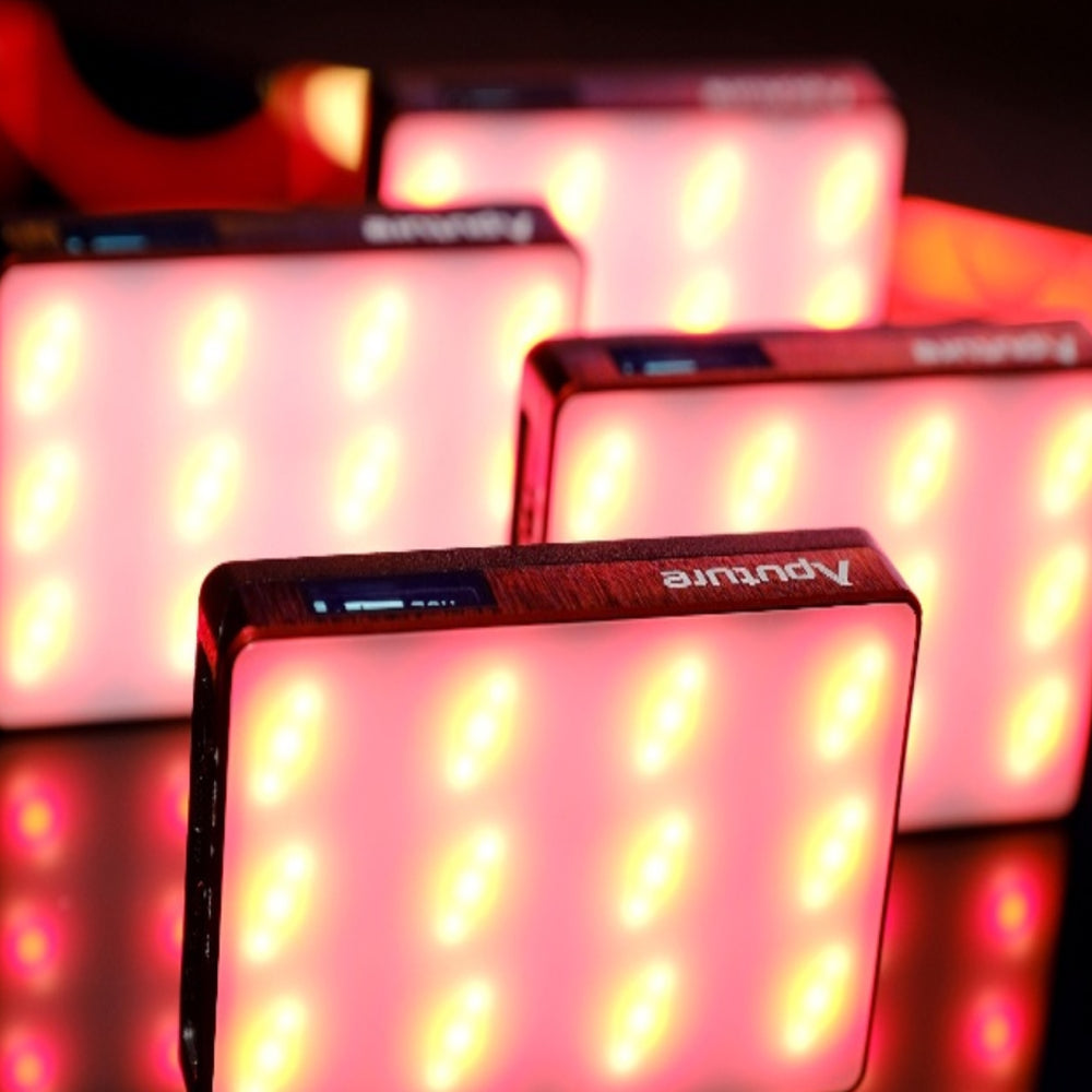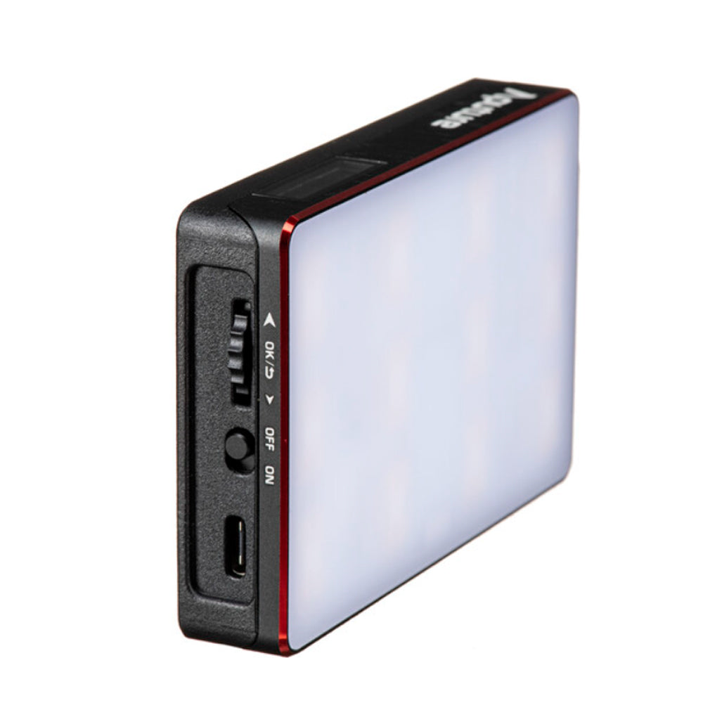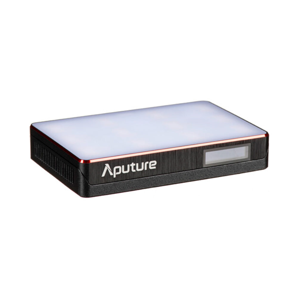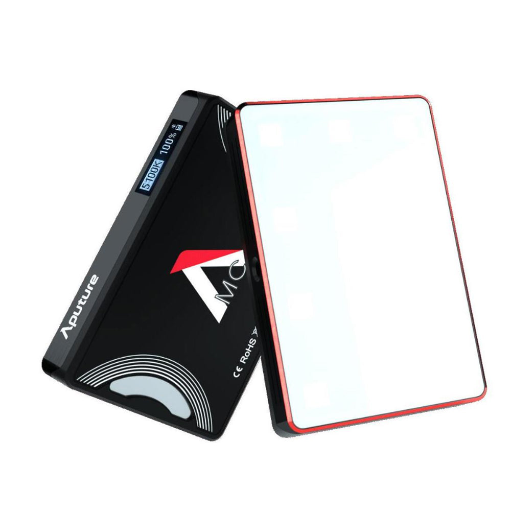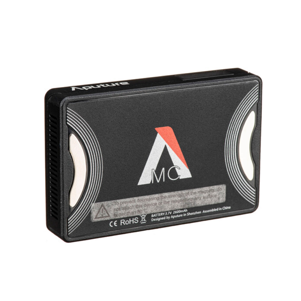 Aputure MC RGBWW LED Light is a palm-size multifunction light measuring only 3.7 x 2.4 x 0.7". It can be mounted via a 1/4"-20 thread or attached to various metal objects via its built-in magnets. Part of the Aputure M-series of lights, it features RGB LEDs as well as tungsten- and daylight-balanced LEDs. It offers 360° hue control and emits up to 95% of the BT 2020 color gamut. The compact light also packs nine built-in special effects settings. You can control it with its native buttons, control wheels, and a small OLED display in the top corner, or remotely using the companion iOS/Android Aputure Sidus Link app.