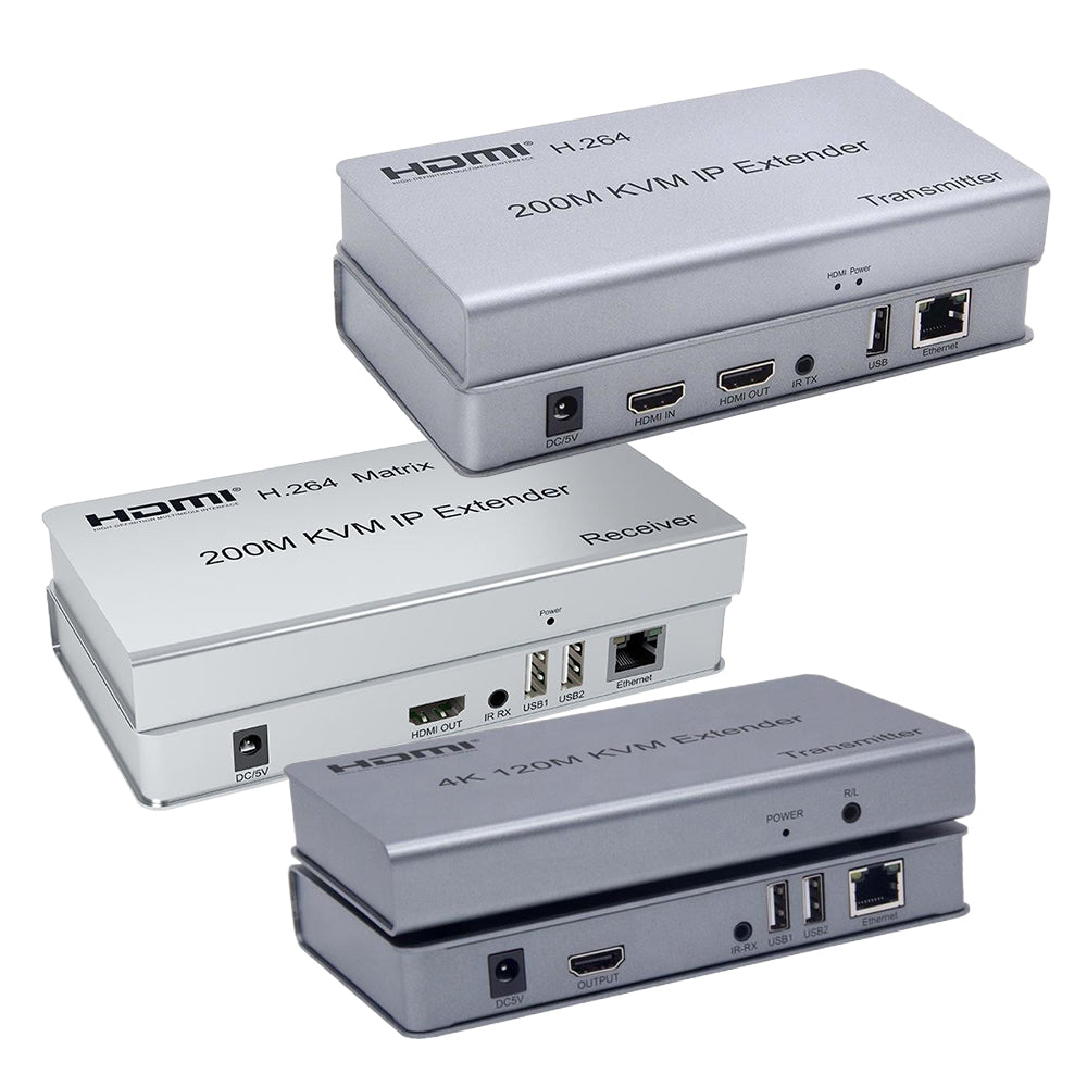 HDMI 120M / 200M Extender over IP is based on TCP/IP standard. It transmits your HD display with the high resolution up to 200 meters away from your DVD or computer source by using one CAT5e/6 cable.