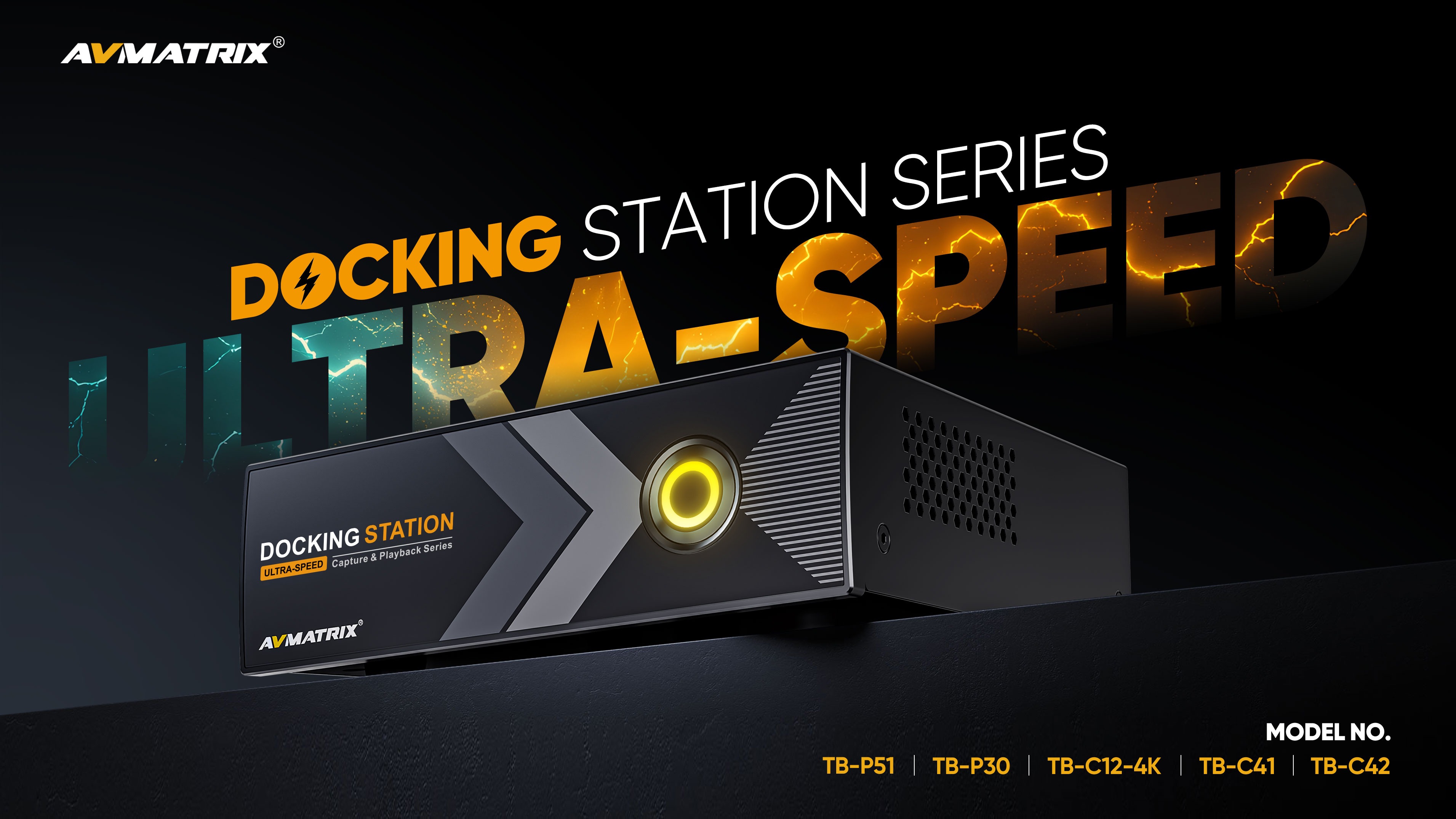 The AVMATRIX TB Series — including the TB-P51, TB-C41, and TB-C42 — are professional Thunderbolt 3 capture and docking stations designed for high-speed video workflows. All three models deliver 40 Gb/s data transfer, 1080p60 capture, and 48 kHz/24-bit audio with DisplayPort and USB 3.1 Gen 2 connectivity.