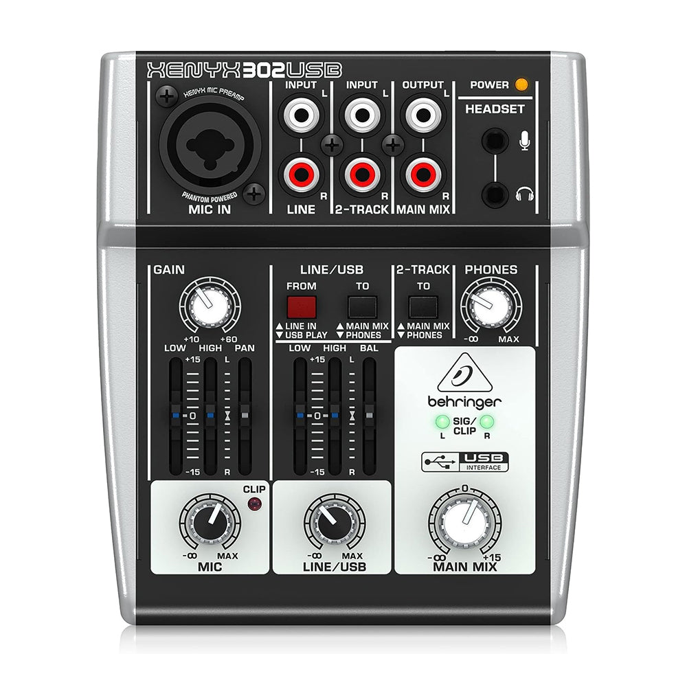 The XENYX 302USB features one of our state-of-the-art, phantom powered XENYX Mic Preamps, an XLR & ¼ ” combination input and a stereo USB/Line channel plus a dedicated 2-Track input. And since the XENYX 302USB can be powered directly via your laptop’s USB socket, it’s the perfect portable mixer for podcasting and impromptu recording, the ultra-compact 302USB comes with all the recording and editing software needed to turn your computer system into a complete, high-performance home or portable recording studio. XENYX preamps offer a staggering 130 dB of dynamic range, with a bandwidth that extends from below 10 Hz to well above 200 kHz. Armed with these outstanding mic preamps, the XENYX 302USB provides such transparent, crystal-clear performance you just might think someone upgraded your mics while you weren’t looking.