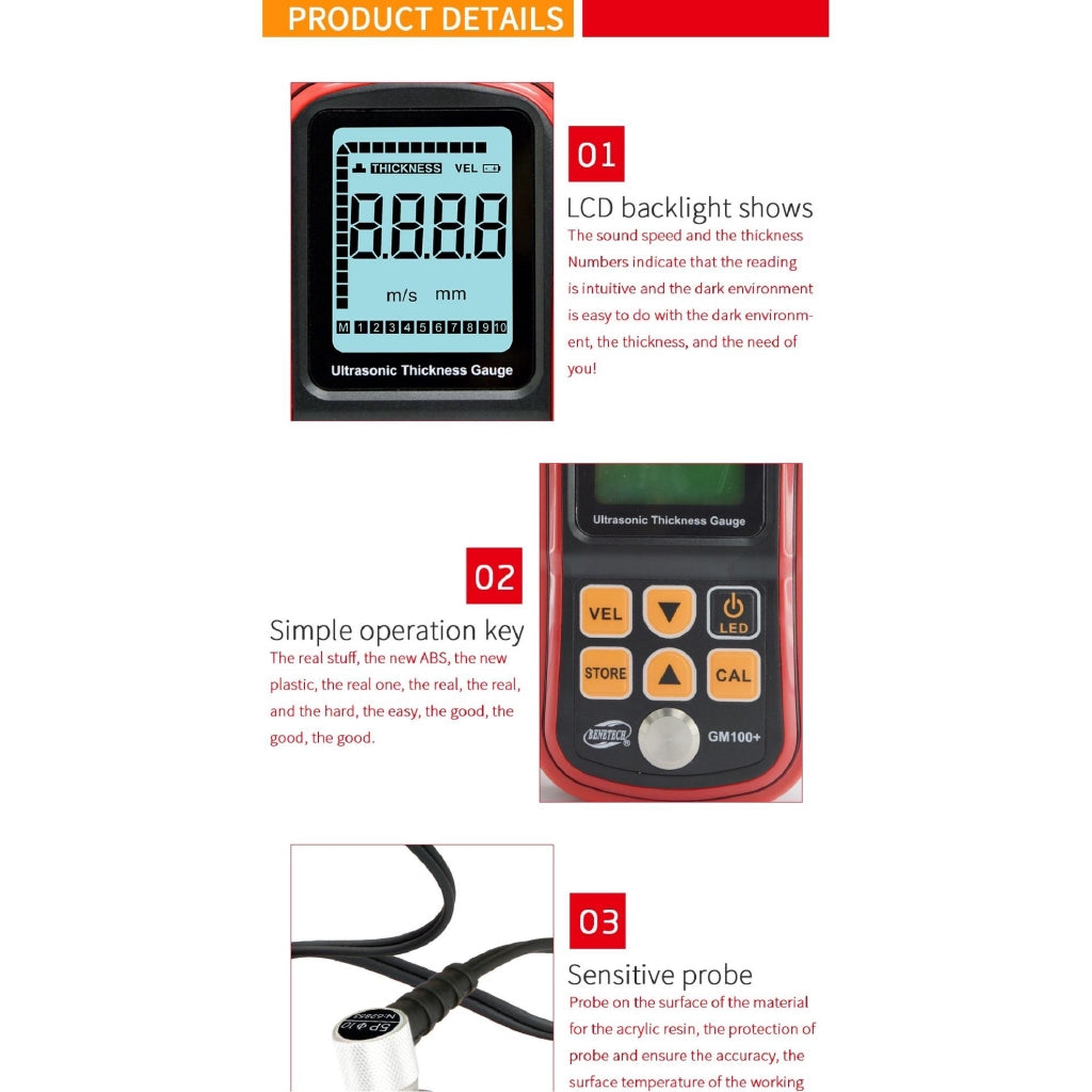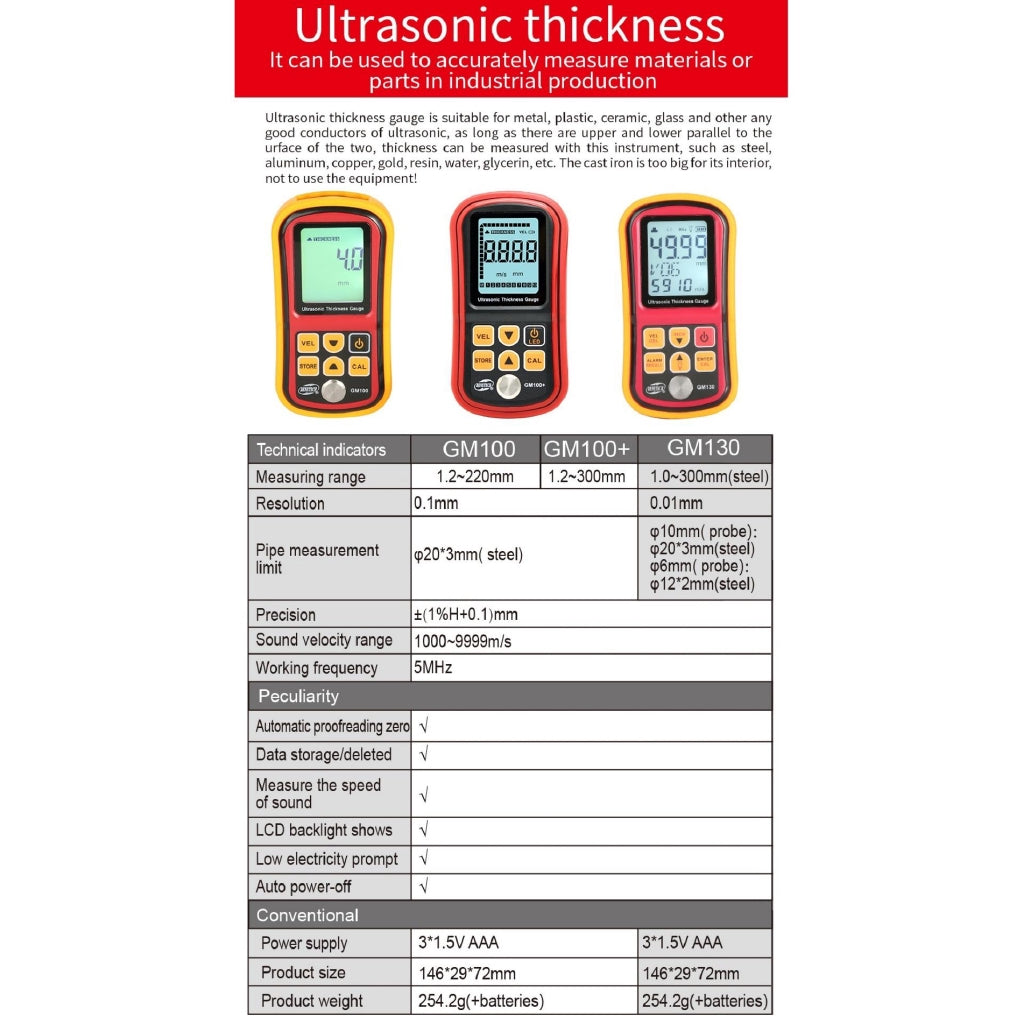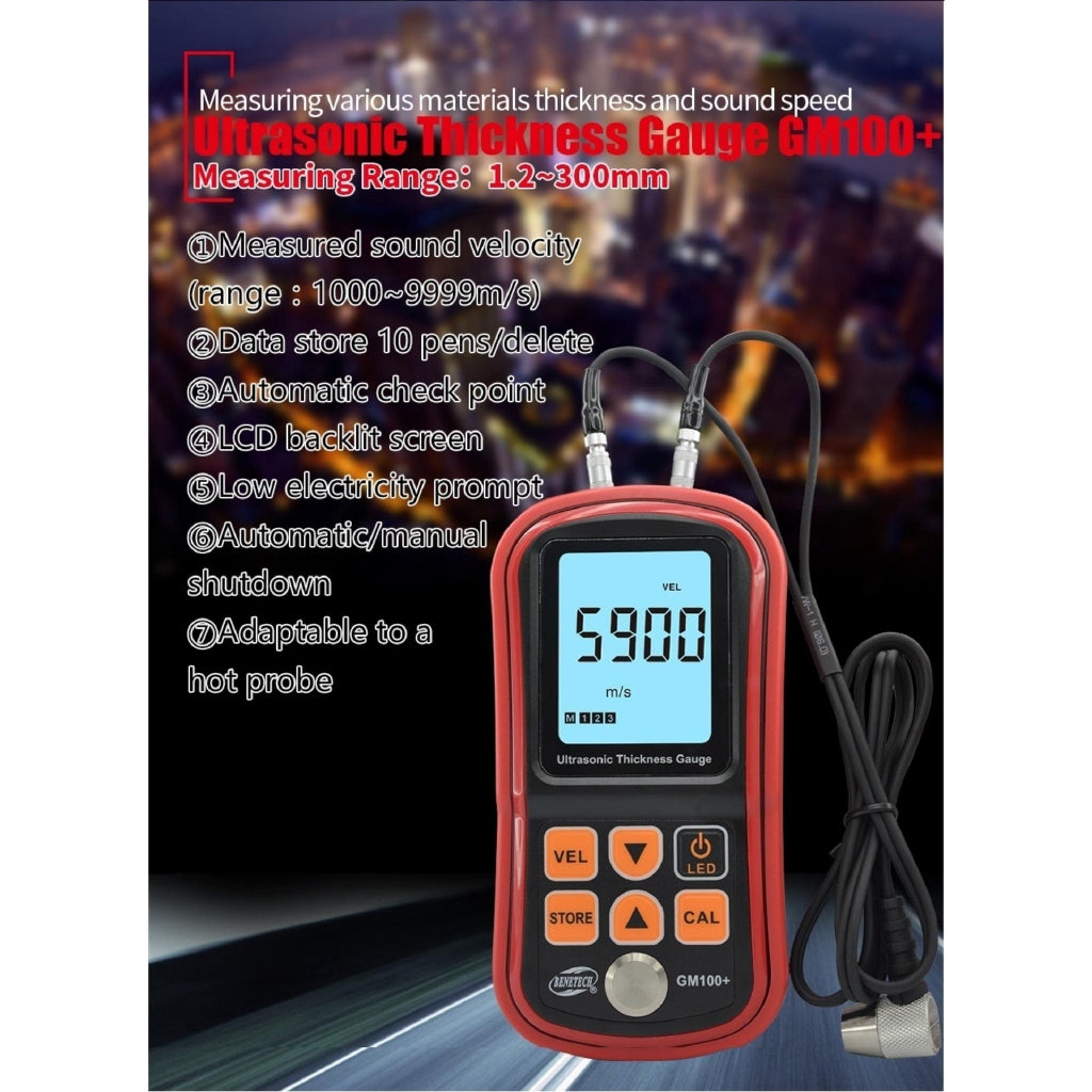 Benetech GM100+ Plus Ultrasonic Thickness Gauge Tester Metal Width Measuring Instrument 1.2~300.00mm (Steel)