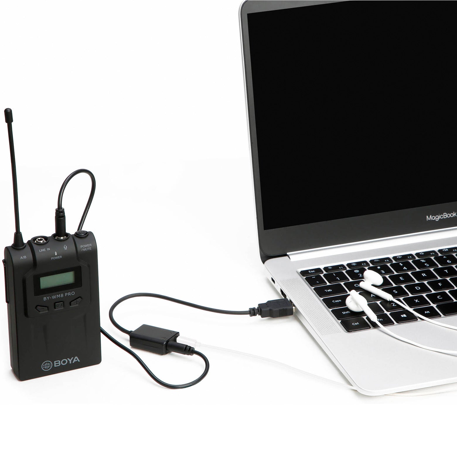 With the BOYA EA2L 15cm adapter cable, you can connect a mic with a 3.5mm plug such as a lavalier, headset, handheld, or shotgun mic directly into your computer's USB port for recording, livestreaming, or conferencing. This connector also features a 3.5mm TRS headphone port to allow convenient monitoring through headphones. The EA2L utilizes a 3.5mm TRS female microphone input, a USB 2.0 Type-A output, and lightweight plastic construction. The 5.9" long adapter cable provides extra space between your computer and your microphone connection.