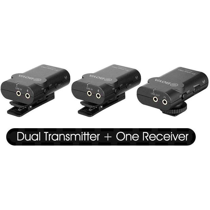 Boya BY-WM4 Pro K2 Portable 2.4G Wireless Lavalier Lapel Microphone System (Dual Transmitters + One Receiver) with Hard Case for DSLR Camera Camcorder Smartphone PC Tablet Sound Audio Recording Vlog Live Streaming Livestream Interview