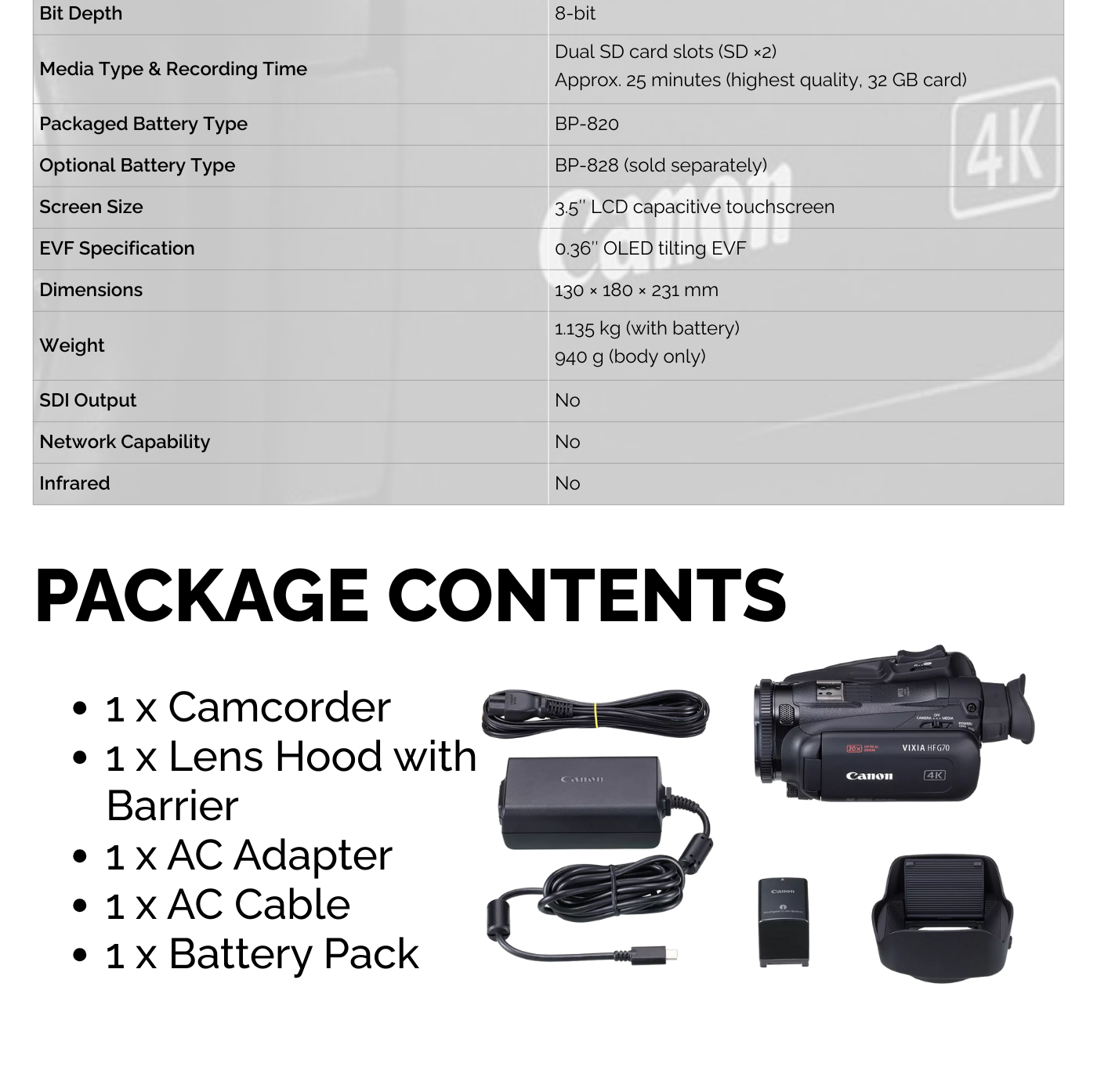 SKU:CANON HF G70 US