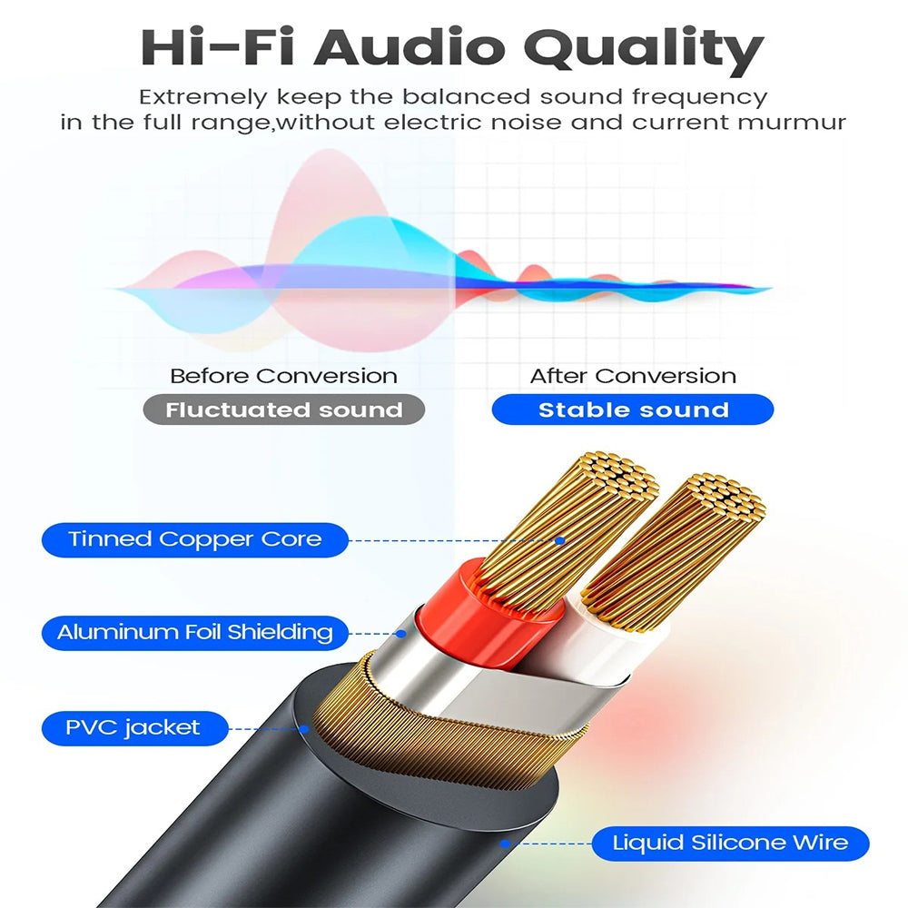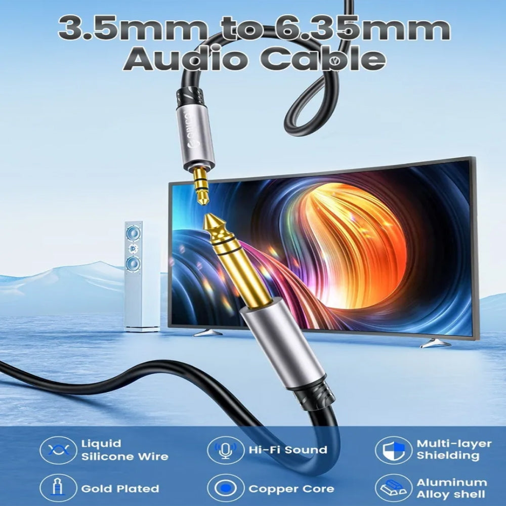 ORICO 3.5mm TRS to 6.5mm TRS Audio Cable with Gold-Plated Male-to-Male AUX Connectors & Flexible Silicone Cord for Guitars, Audio Mixers, Amplifiers, Speakers, Sound Cards, Music Players, Smartphone, Computer Desktops & Laptops
