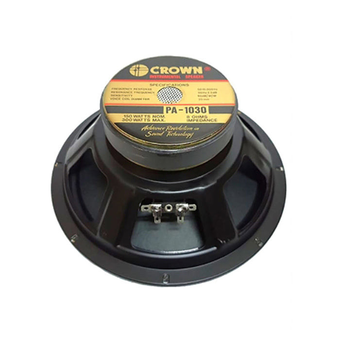 [CLEARANCE] Crown 300W / 400W 10" Instrumental Speaker with 50mm Voice Coil, 50Hz-15kHz Frequency Response, Max 8 Ohms Impedance and 93dB Sensitivity Level (PA-1030, PA-1040)