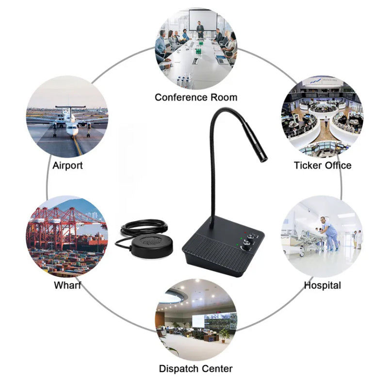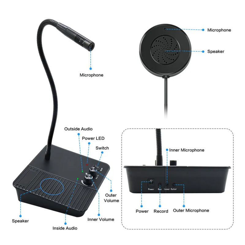 Adjustable Neck & Anti-interference- It also features an adjustable gooseneck type mast for maximum comfort and vocal clarity and the 42db microphone sensitivity could reduce the conditional static noise effectively. Your communication is unimpeded when you close to the window intercom speak
