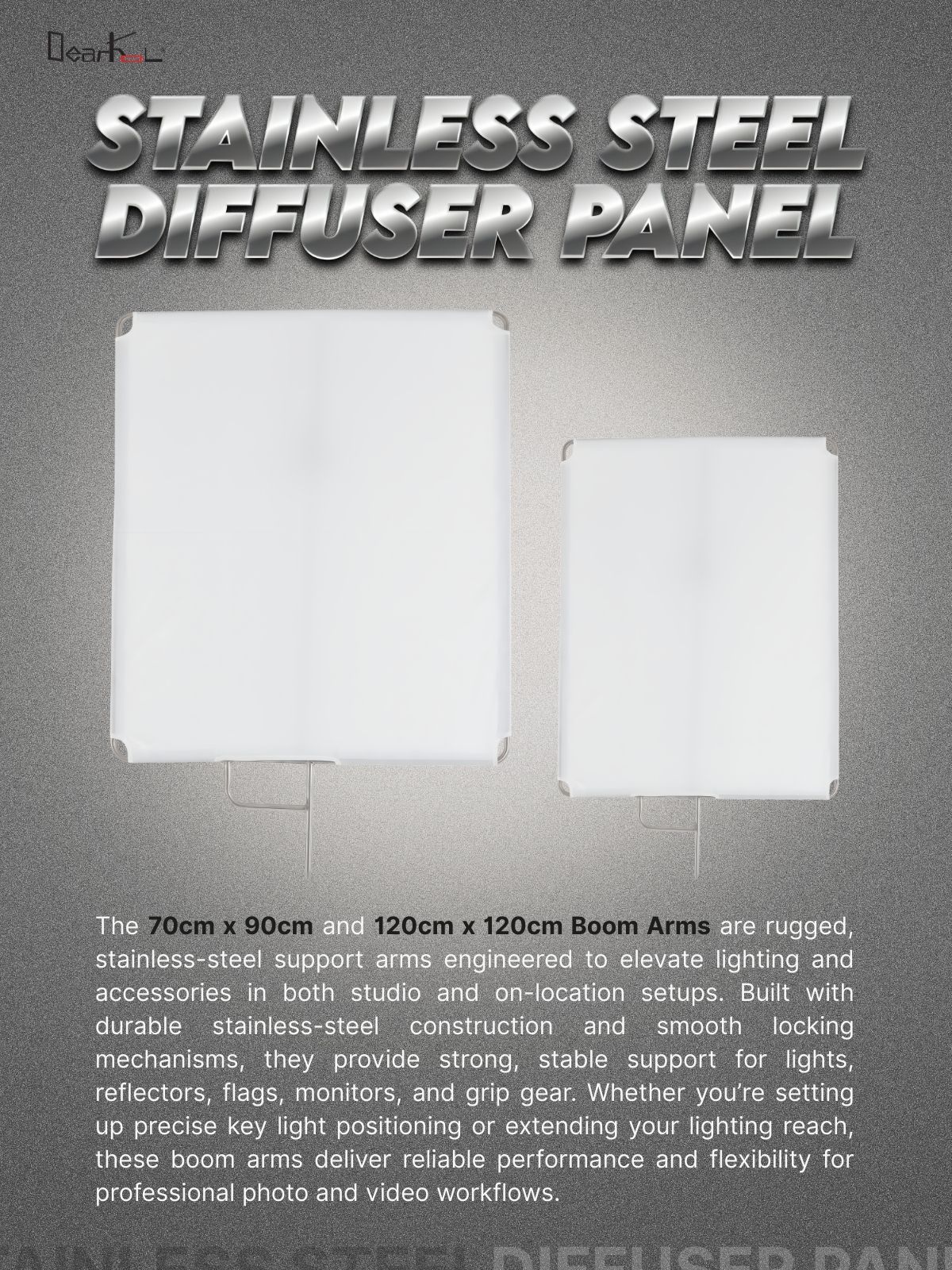 Dearkol 70x90cm / 120x120cm Stainless Steel Flag Panel with Soft Diffuser | HB-2836SS, HB-4848SS