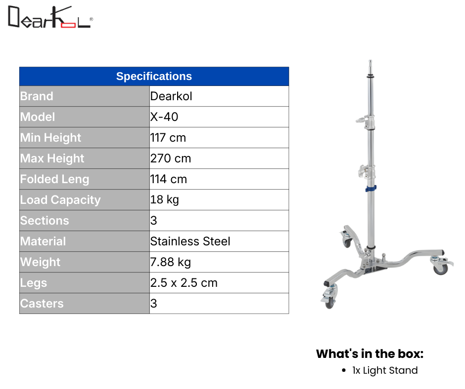 - Adjustable height from 117 cm to 270 cm with 3-section design