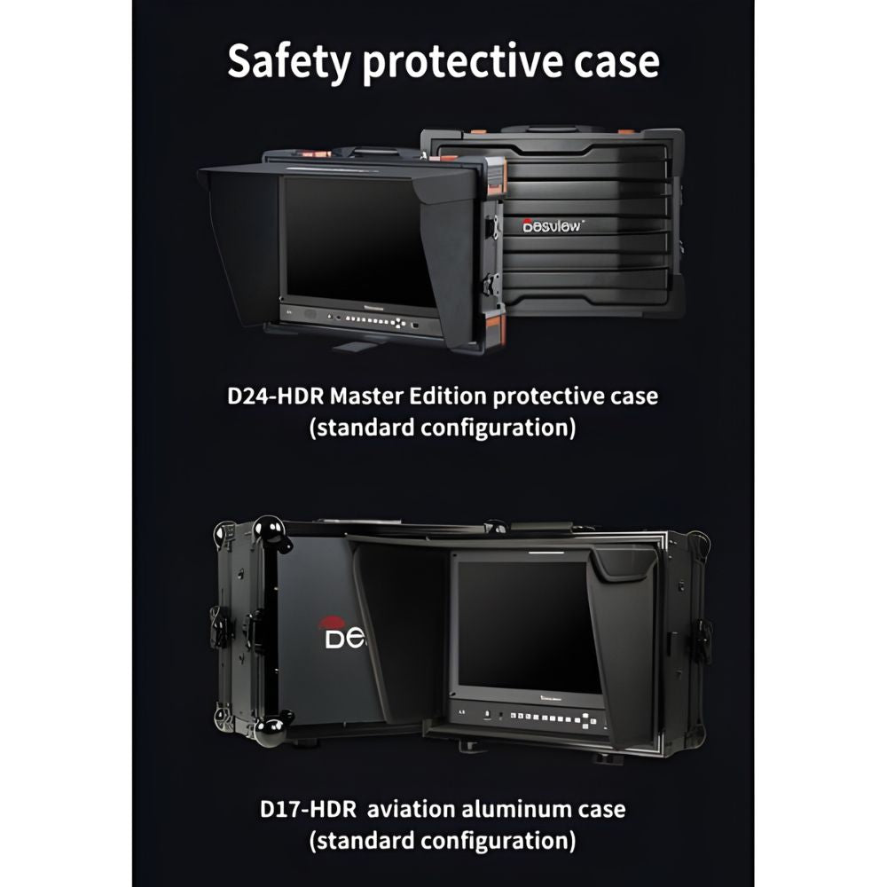 The 17.3" Monitor with Protector Case from Desview features a durable safety case and a bright 4K HDR display for broadcast, field production, or cinema monitoring. The 17.3" display features a 3840 x 2160 resolution, 400 cd/m² brightness, and 1000:1 contrast ratio for crystal clear imagery. The monitor features 3G-SDI, HDMI, and USB inputs that support up to 4K60 video, and it can output via 3G-SDI and HDMI to additional destinations such as other monitors and switches.