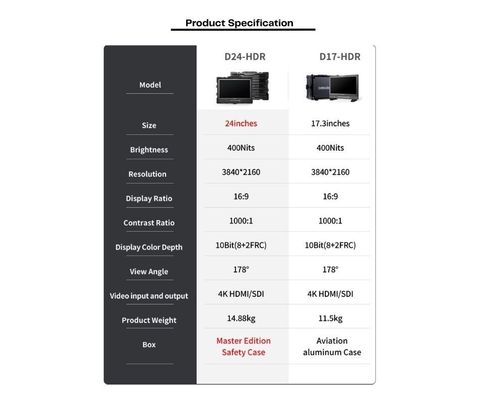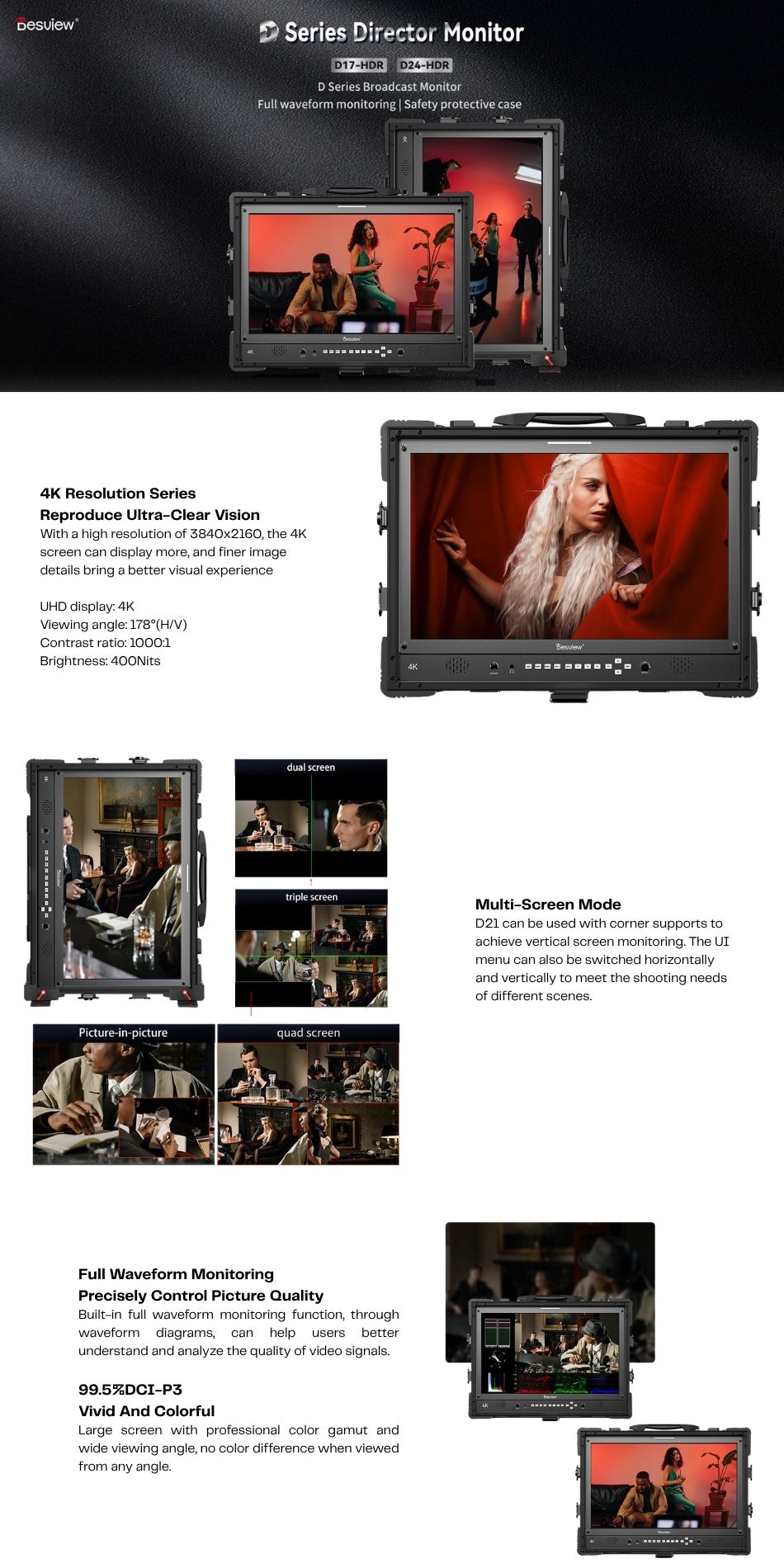 Desview 17.3" / 23.8" 4K UHD Director Monitor 3840 x 2160 HDR Display | D17 | D24
