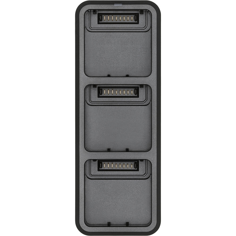 When connected to a designated charger, the DJI Mavic 3 Battery Charging Hub can expand the charging interface to three. The battery charging hub enhances efficiency by charging batteries in sequence according to their remaining power level, with more fully-charged batteries receiving power first.