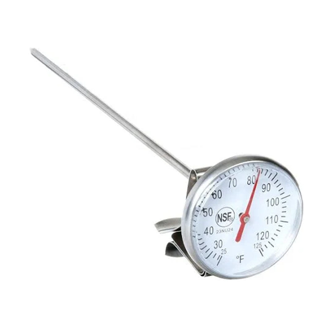 A staple in any busy kitchen, the Johnson Rose 30100 Dial Pocket Thermometer 1" allows chefs to conveniently monitor food temperature while cooking. When inserted into oven baked foods, sauce, or cooking oil, this thermometer accurately reads temperatures up to 220 degrees Fahrenheit. Thanks to its 1" dial display, this thermometer provides clear readings and its stainless steel construction makes it exceptionally durable. When not in use, place this pocket thermometer inside the plastic sleeve.
