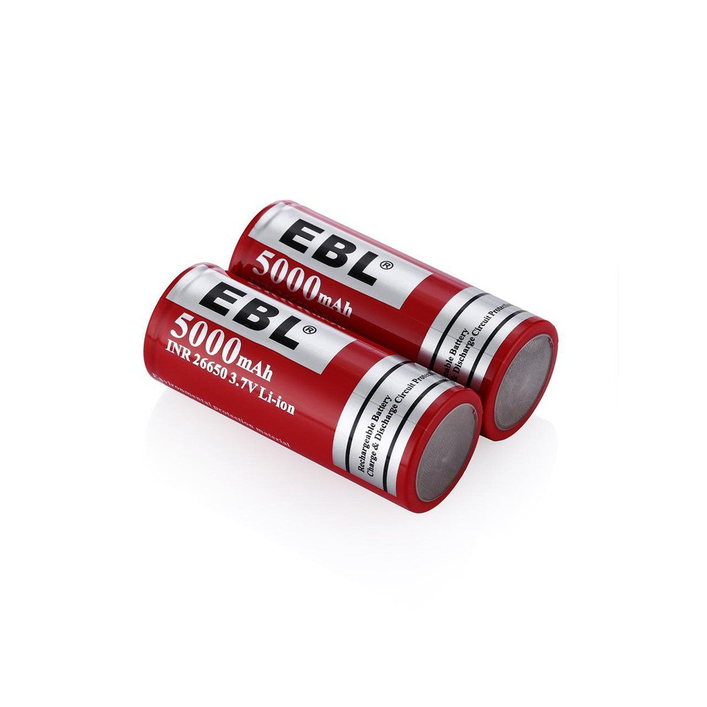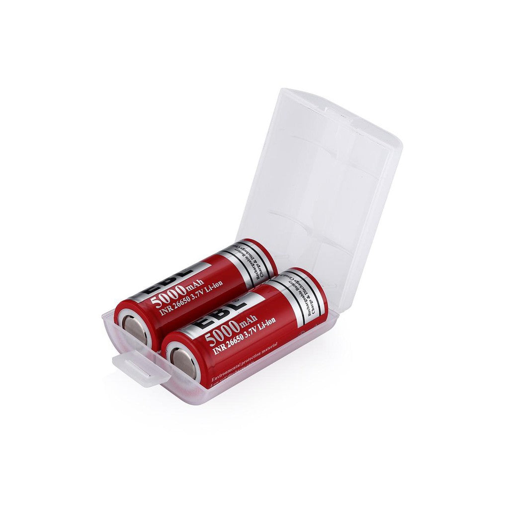 EBL LN-8191 3.7V 26650 5000mAh Rechargeable Li-Ion Lithium-Ion Battery with Included Storage Case for Portable and Emergency Electronics (Pack of 2)