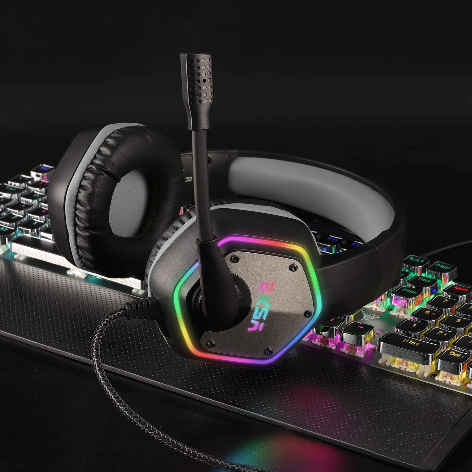 - [One Key Mute Function]: Easy-to-use volume adjustment and one key Mic mute switch, easy for your game operation, say goodbye to intricate control type adjustment. RGB gradient light, help to highlight the atmosphere of the game.