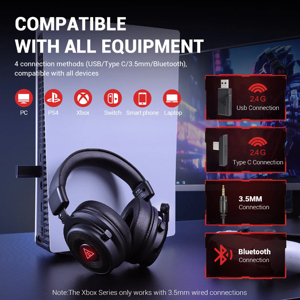 Connection Method: 2.4GHz Wireless + Bluetooth 5.0 + 3.5mm Wired