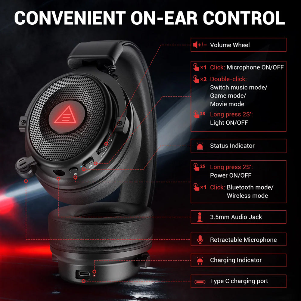 One Key Switch Game/Movie/Music Mode- Unwind, immerse, and play your way with our versatile gaming headset—experience the game, the music, the movie, and more, all in one.