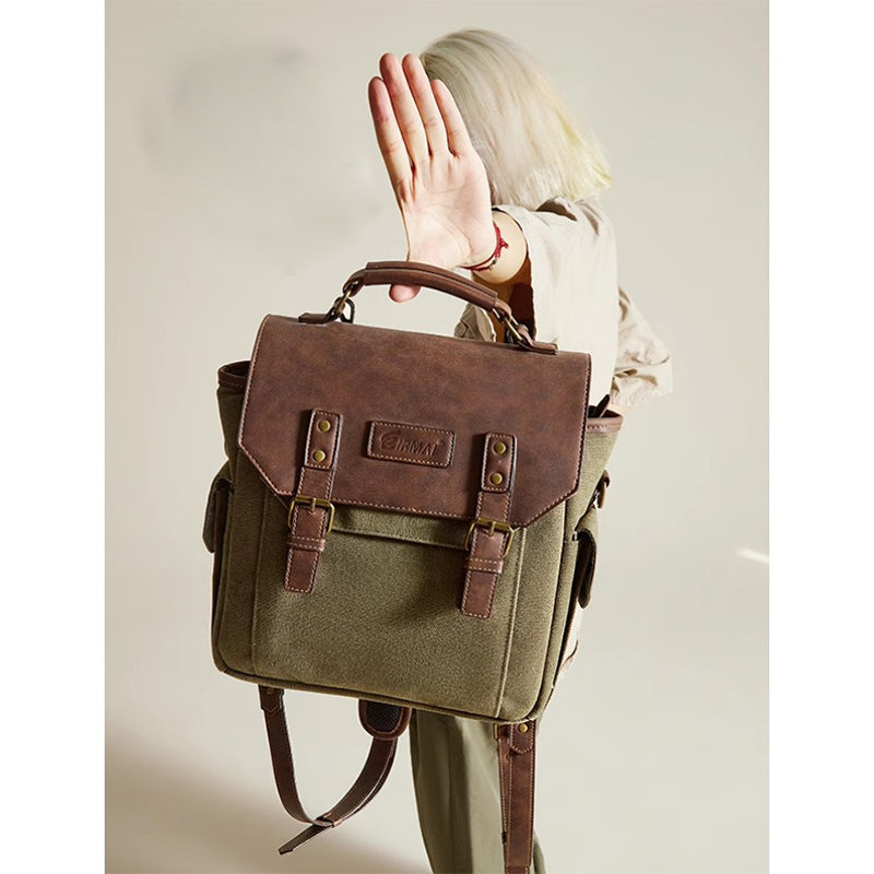 main material: 16' waterproof hay color washed canvas + Crazy Horse PU leather