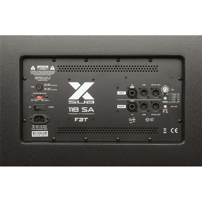 Loaded with a single 18\" heavy duty woofer, the X SUB 118SA is controlled by a 1200W Class D amplifier with DSP at 4 preset allowing perfect tailoring of the extended low frequency to the mid-high. The rugged plywood enclosure is built to withstand touring conditions, yet crafted with Italian style to suit the most elegant fixed installation. Finally, the M20 thread allows for pole mounting on a 3-way system design