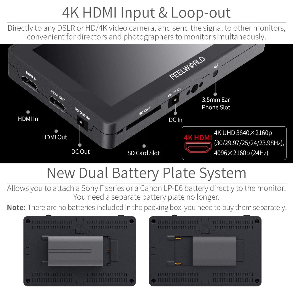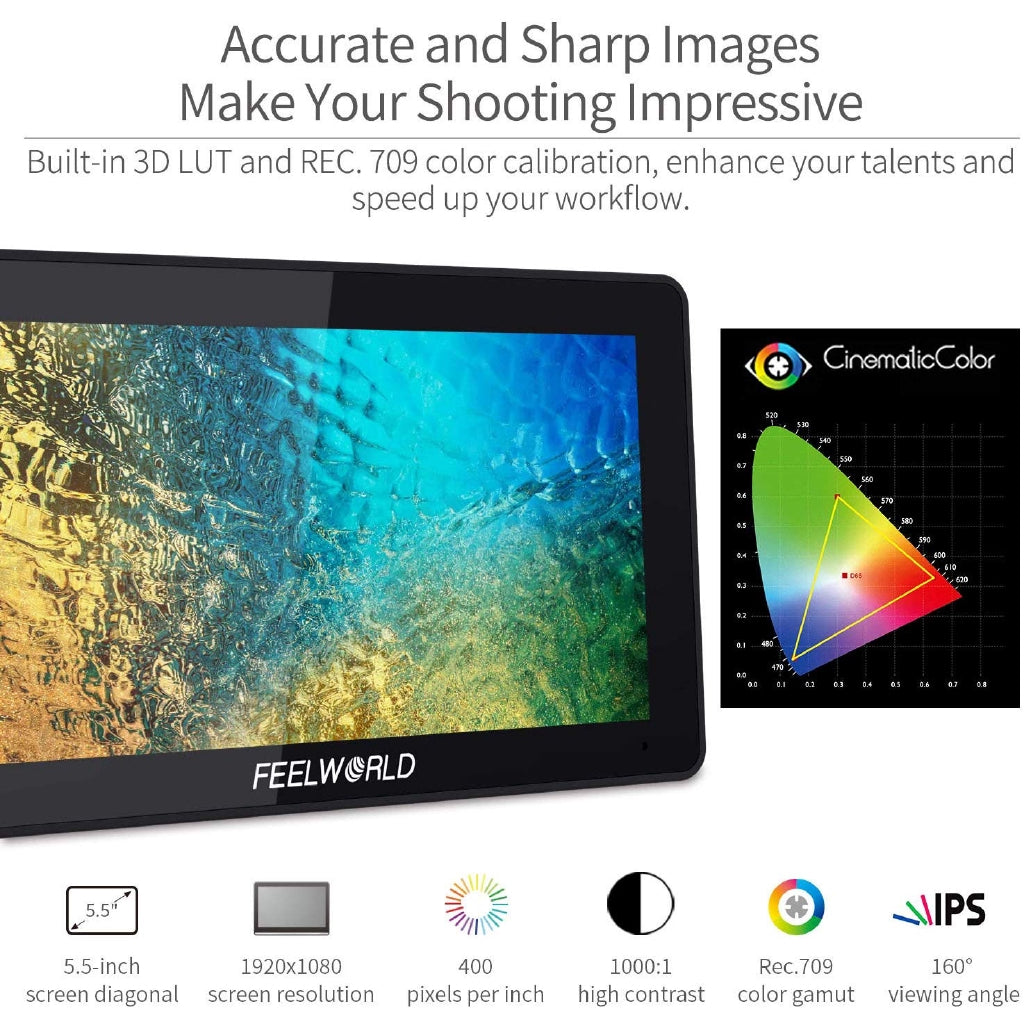 FEELWORLD F6 Plus 5.5 inch DSLR Camera Field Touch Screen Monitor with 3D Lut Small Full HD 1920x1080 IPS Video Peaking Focus Assist 4K HDMI 8.4V DC Input Output Include Tilt Arm