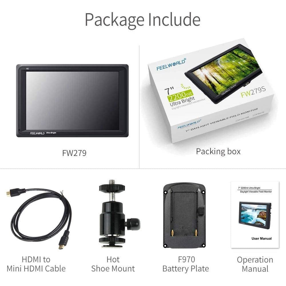 FEELWORLD FW279 7 Inch On Camera DSLR Field Monitor Full HD Focus Video Assist 1920x1200 IPS with 4K HDMI Input Output 2200nit High Brightness