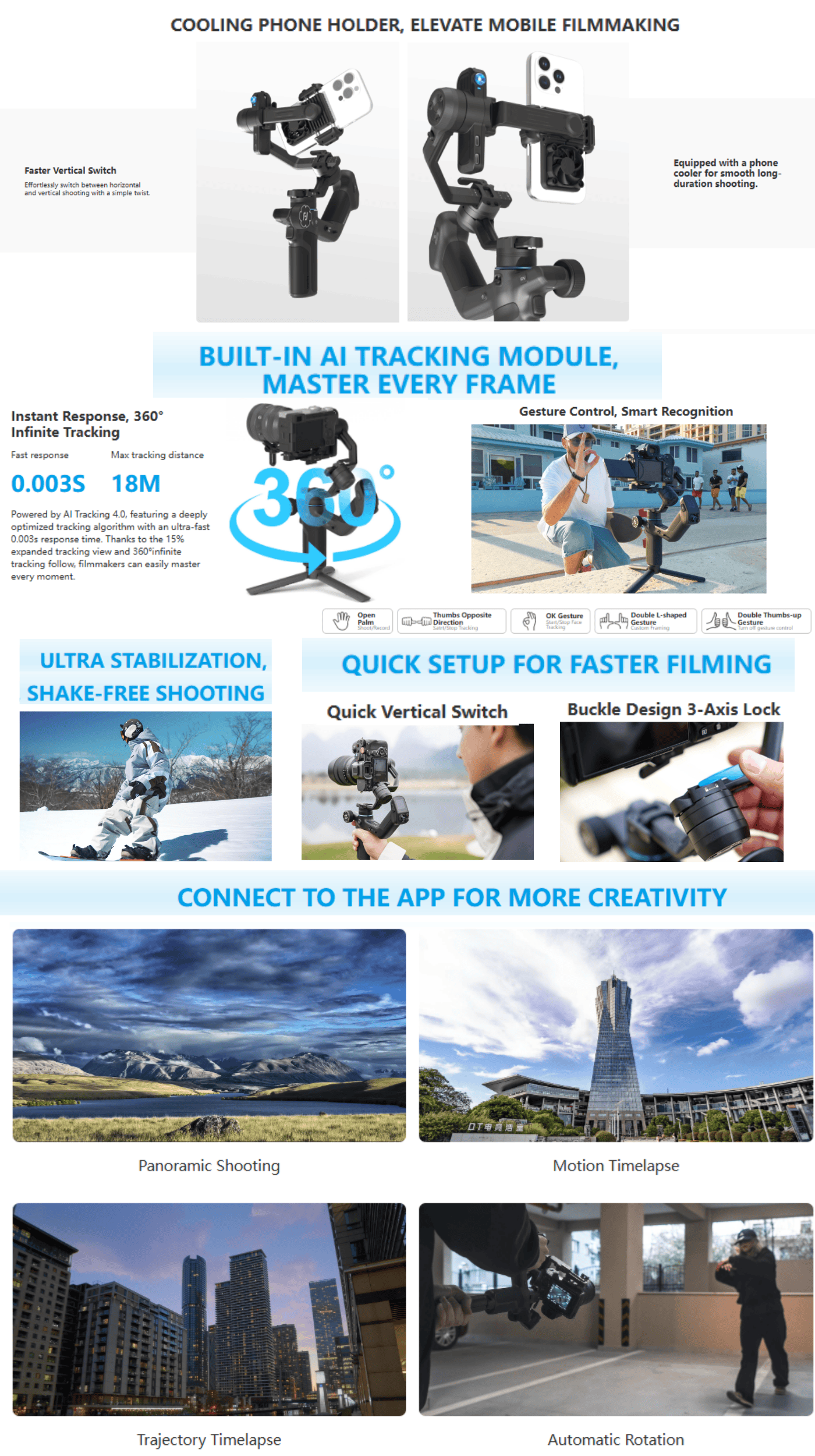 - Motorized 3-Axis Gimbal with App Control